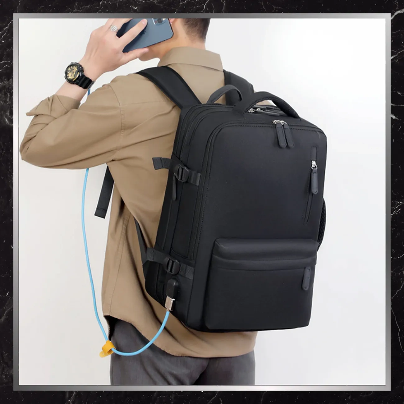 Rucsac negru pentru bagaj de mână de călătorie cu avionul USB BAD&BAGS rezistent la apă
