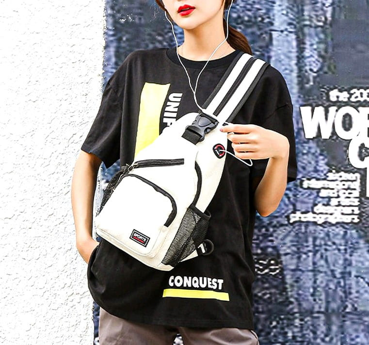 Purtați rucsacul pe umăr cu cureaua reglabilă, îl puteți purta pe față sau pe spate pentru acces rapid la conținut, sau îl puteți muta pe lateral sau pe spate,