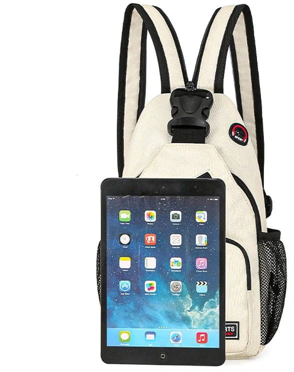 Rucsacul are o gaură specială din cauciuc pentru cablul căștilor, astfel încât să puteți conduce cu ușurință cablul în interior și să îl conectați la telefonul din interiorul rucsacului