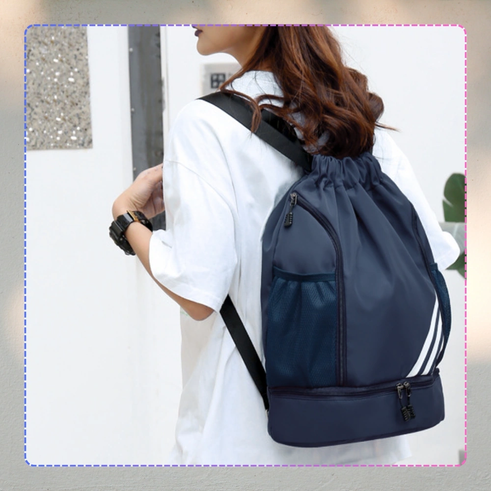 Rucsac sport bleumarin cu șnur, perfect pentru antrenament și gimnastică