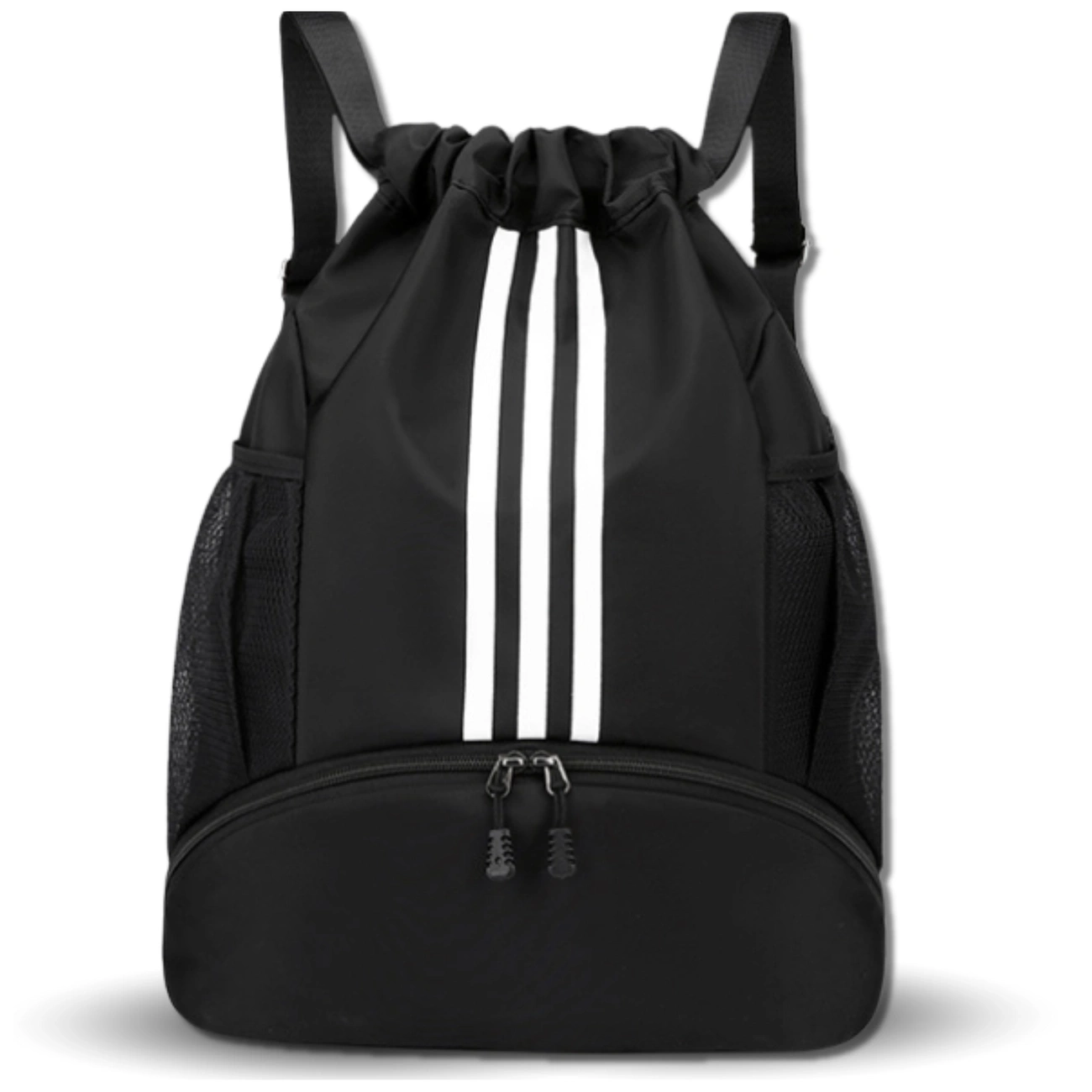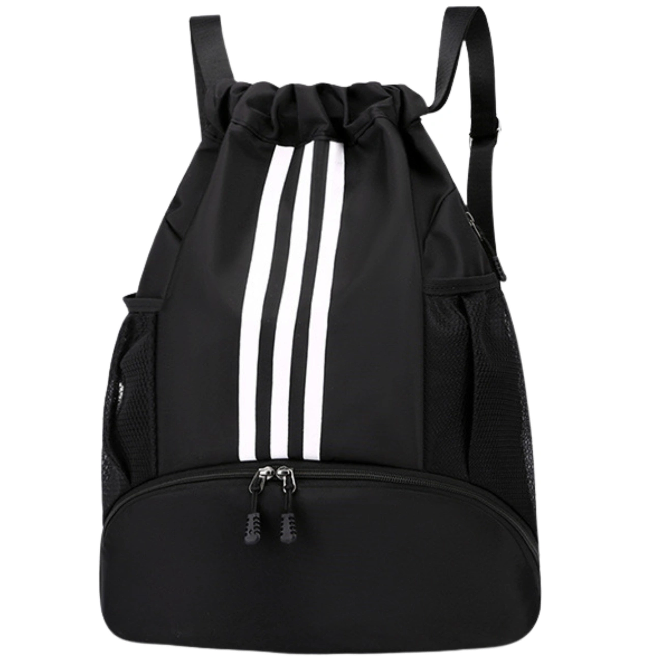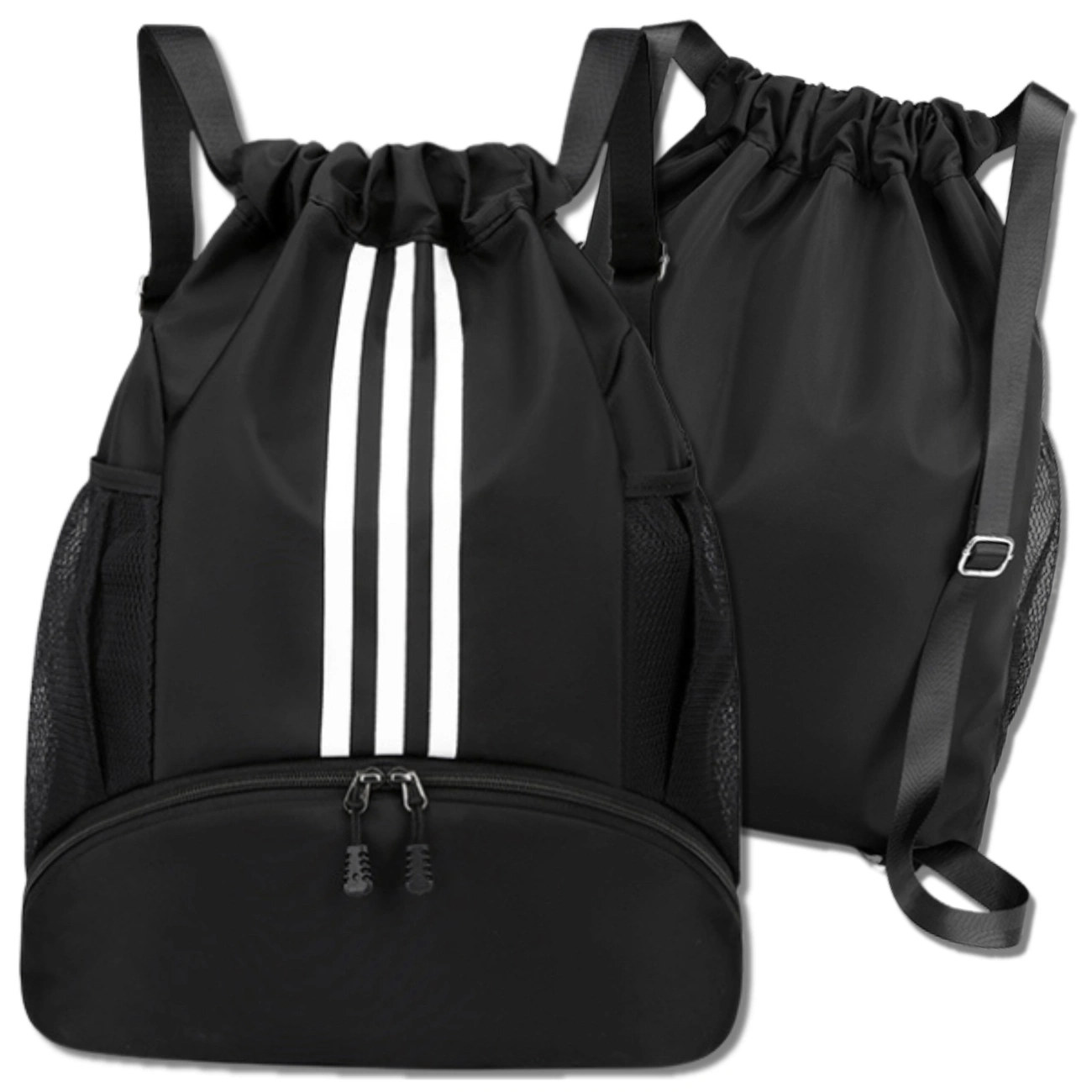 Acest rucsac sport negru este un model spațios și funcțional, conceput pentru... Persoane active. Este perfect pentru sală, antrenamente, cursuri de sport, gimnastică și utilizare zilnică. Produsul este **nou** și fabricat din poliester de înaltă calitate, care este durabil, impermeabil și ușor de curățat.