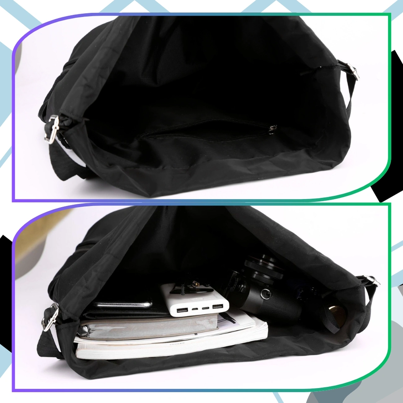 - Buzunare: Două buzunare laterale din plasă, buzunar inferior cu fermoar