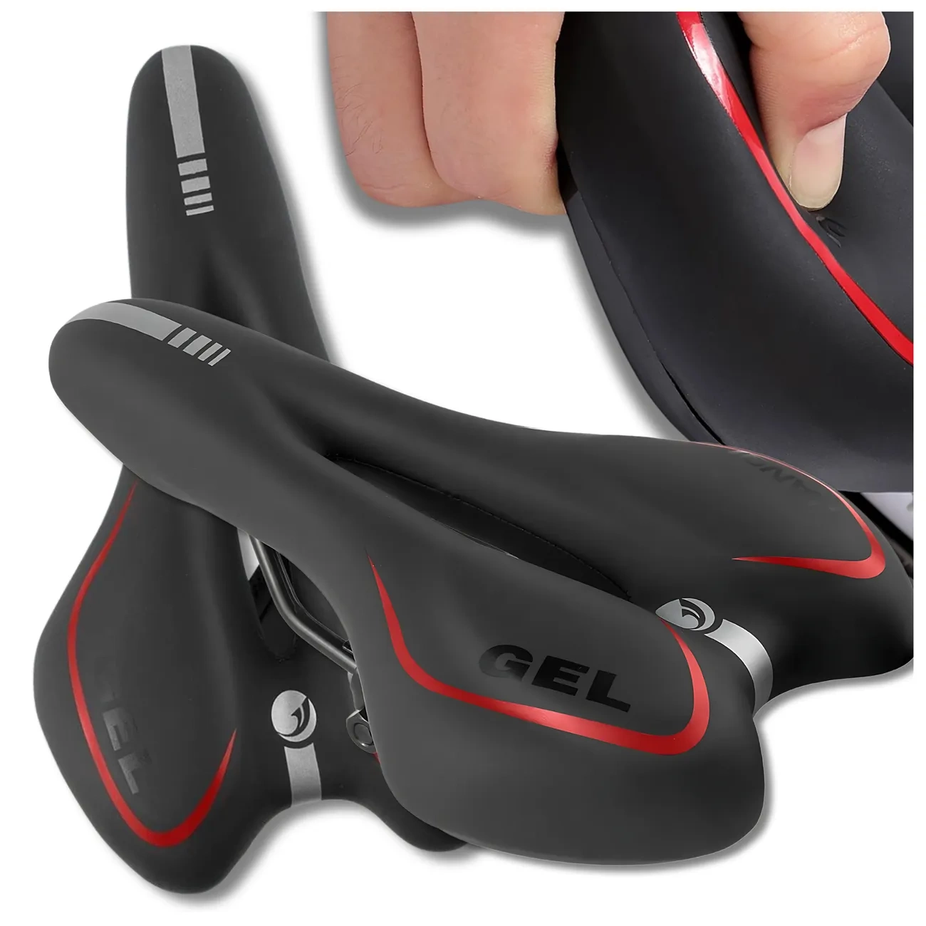Umplută cu material gel elastic, șa de bicicletă cu gel absoarbe eficient șocurile, protejând coloana vertebrală și asigurând confort chiar și pe trasee lungi. Constructia sa moale o face sa se adapteze perfect la forma corpului, reducand presiunea si oboseala.