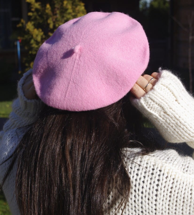 Această bască roz pentru femei cu antene franțuzești se adaptează perfect la circumferința capului.