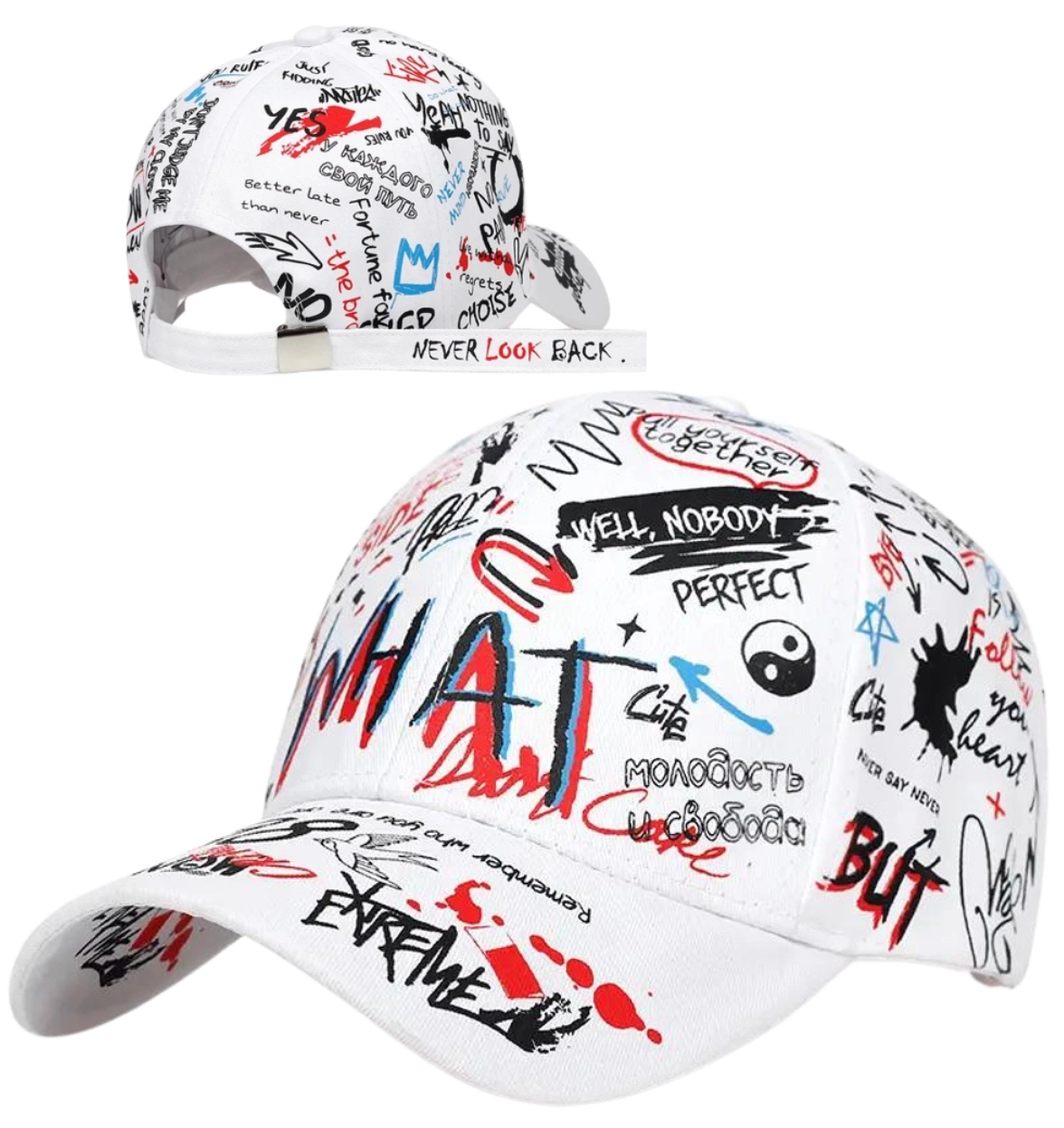 Șapca noastră de baseball Graffiti Slang este alegerea perfectă pentru artiști, creativi, exploratori urbani și toți cei care apreciază originalitatea și doresc ca accesoriile lor să vorbească mai mult decât o mie de cuvinte. Este ideală pentru a completa un look casual, mergând perfect atât cu blugi, cât și cu stiluri mai sportive. Poate fi purtată în fiecare zi, în plimbări, în oraș sau la festivaluri de muzică, adăugând întotdeauna stil și caracter.