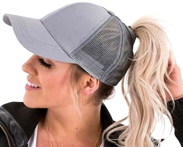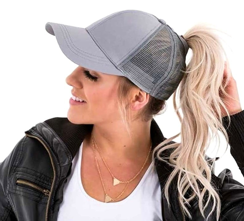 Șapca de baseball are un loc special pentru o coadă de cal.
