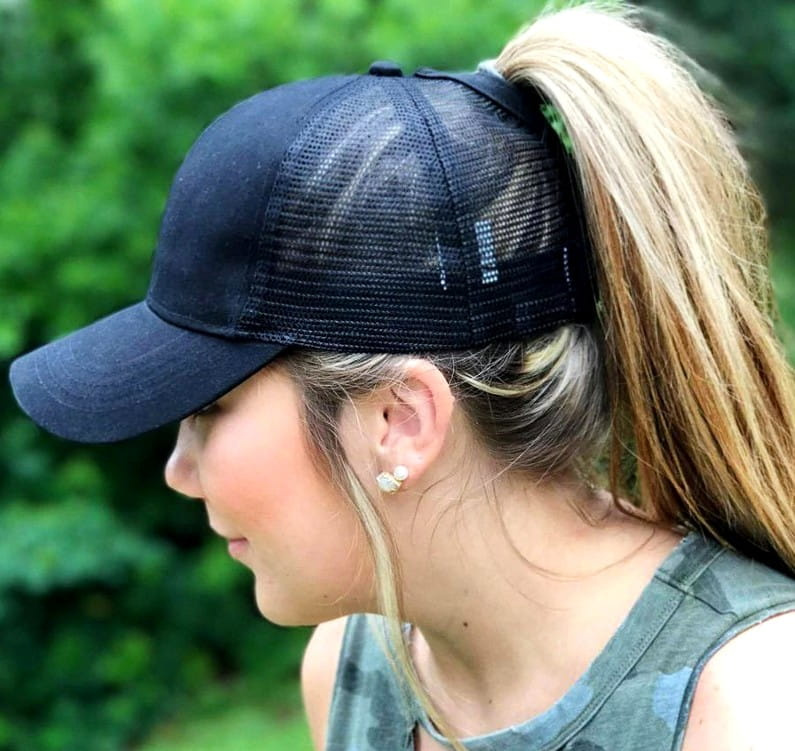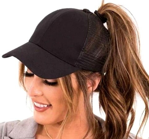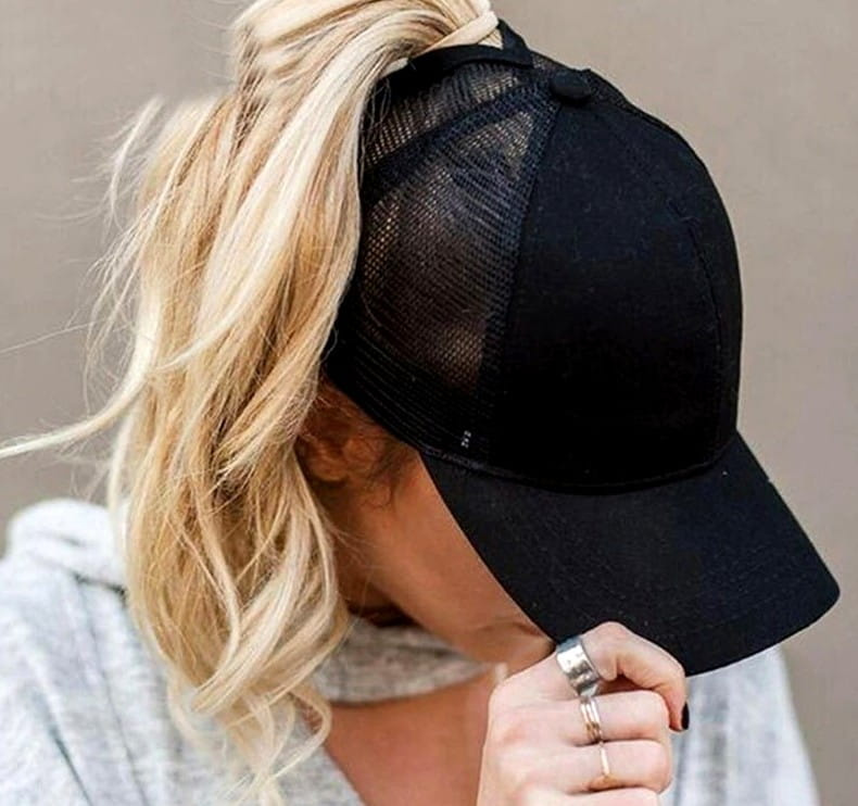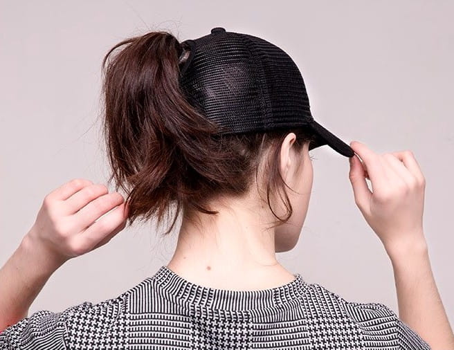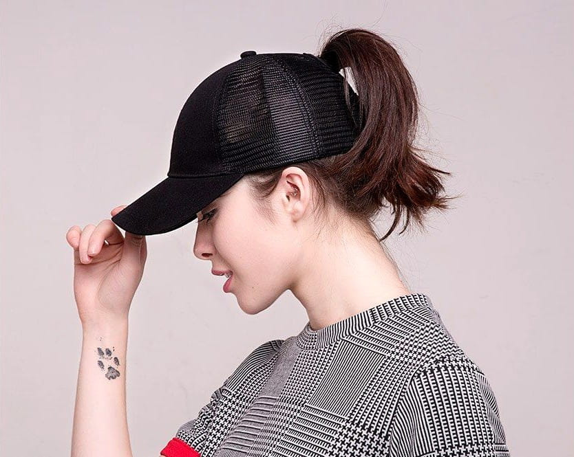 Șapca de baseball are un loc special pentru o coadă de cal.