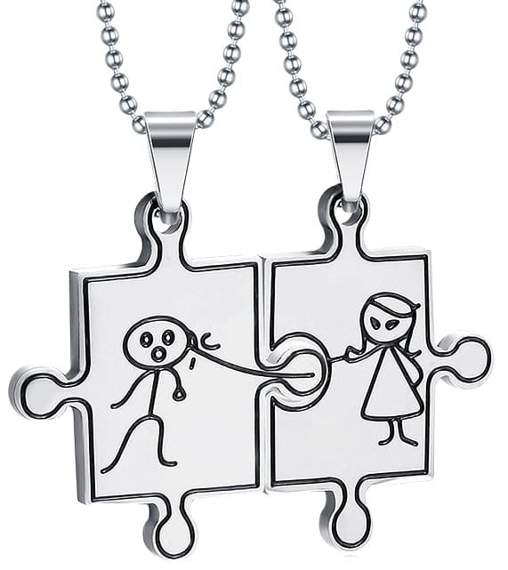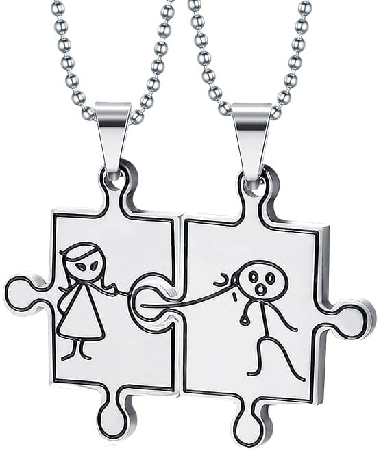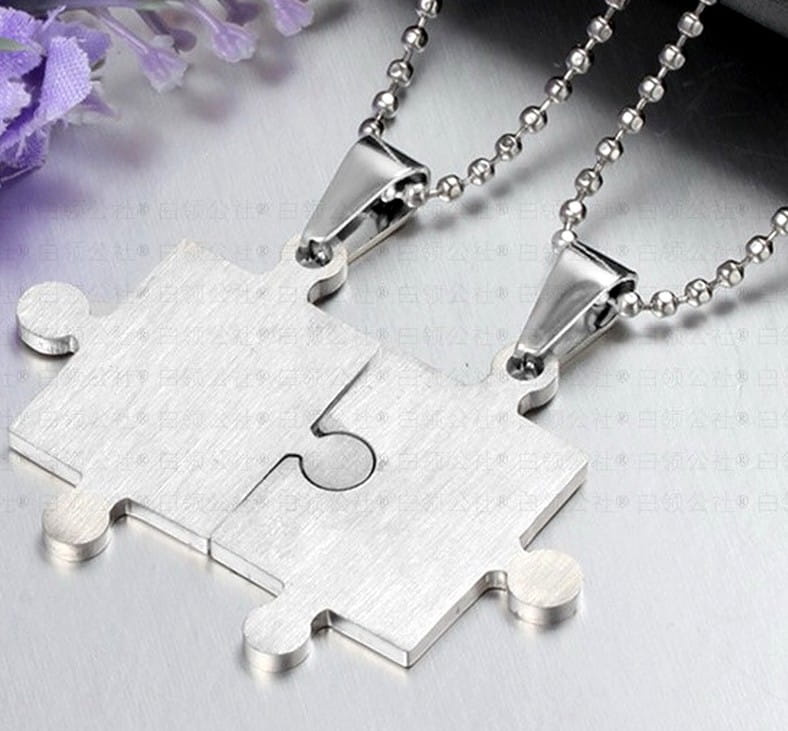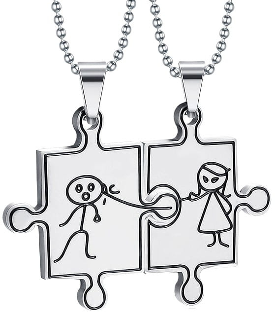 Colier elegant din oțel chirurgical 316L (oțel inoxidabil) , set de două coliere, jigsaw puzzle
