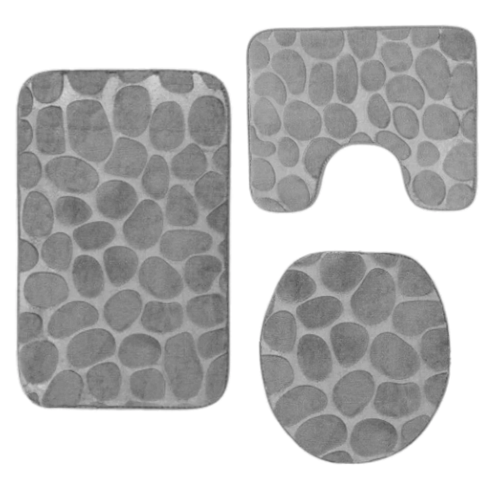 Set de 3 covorașe de baie anti-alunecare cu model în relief - gri