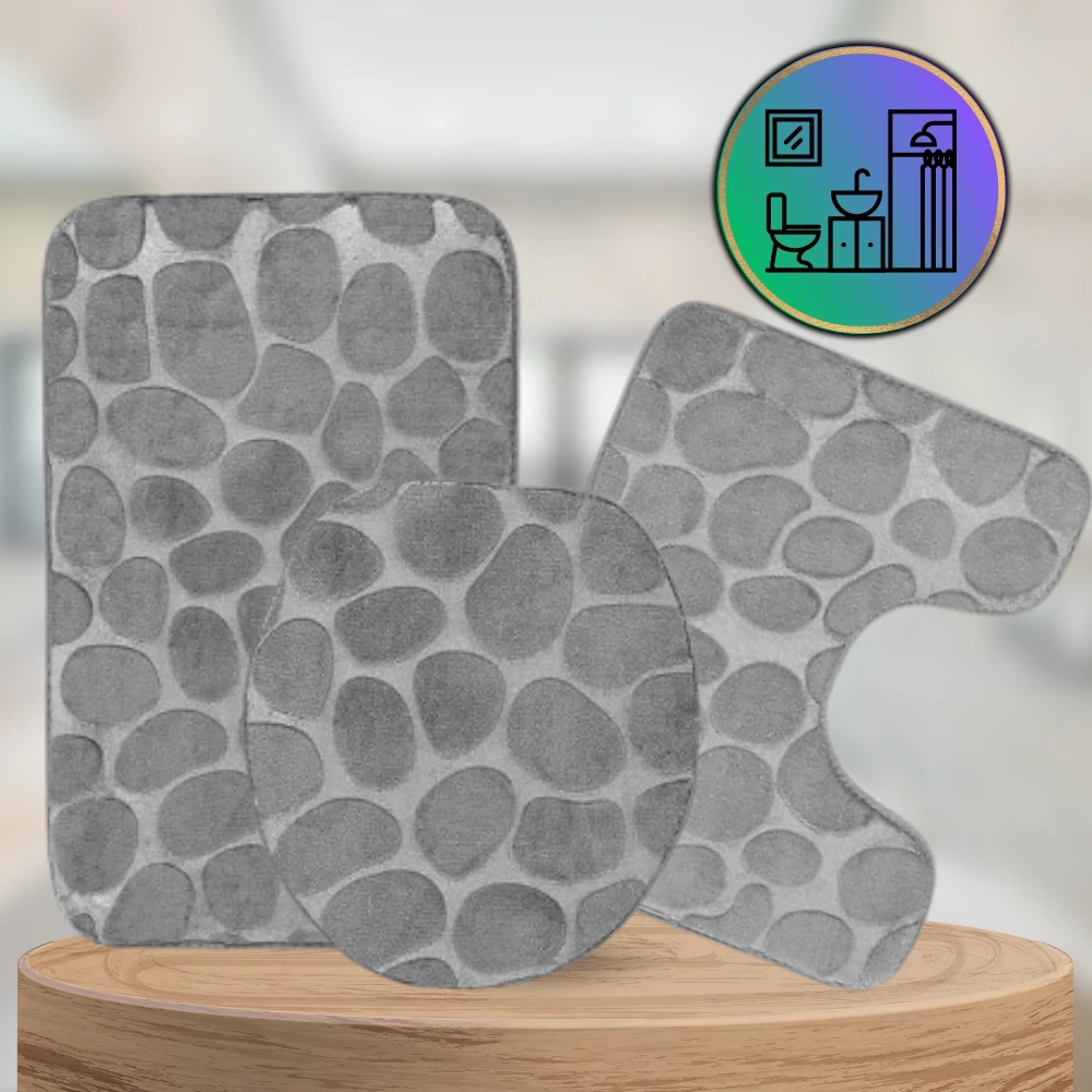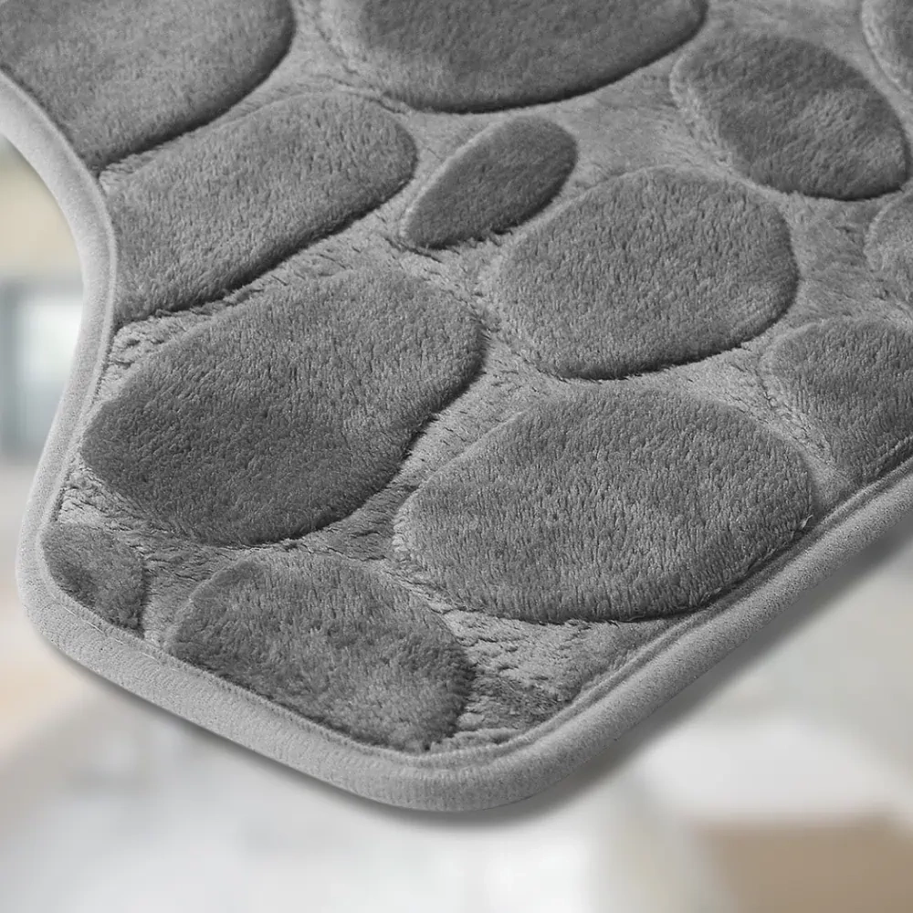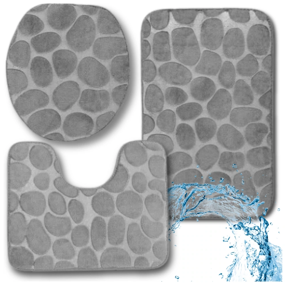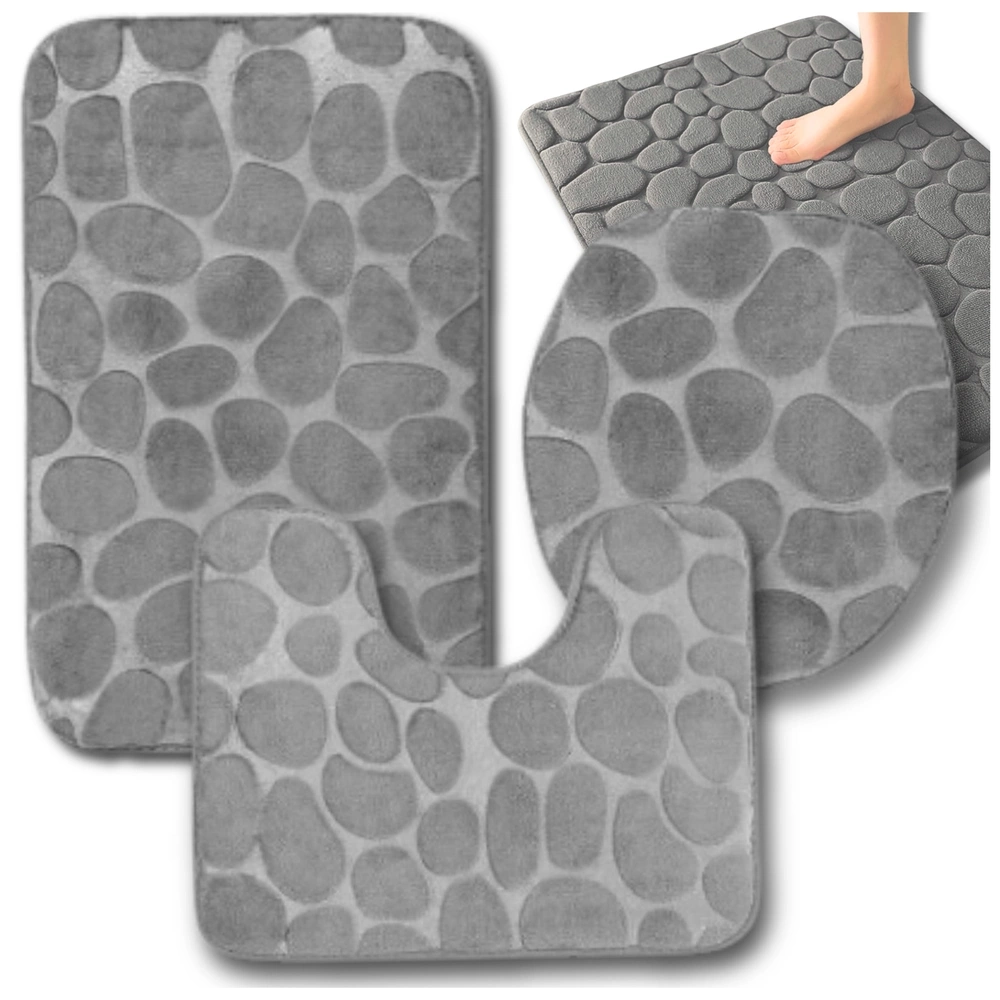 Descoperiți confortul și funcționalitatea cu ajutorul nostru un set de covoare pentru baie, care constă din 3 elemente, potrivite perfect diferitelor zone din baie. Datorită unui model elegant, în relief, care amintește de pietre, acest set gri oferă interiorului un aspect modern, introducând în același timp un accent decorativ plăcut.