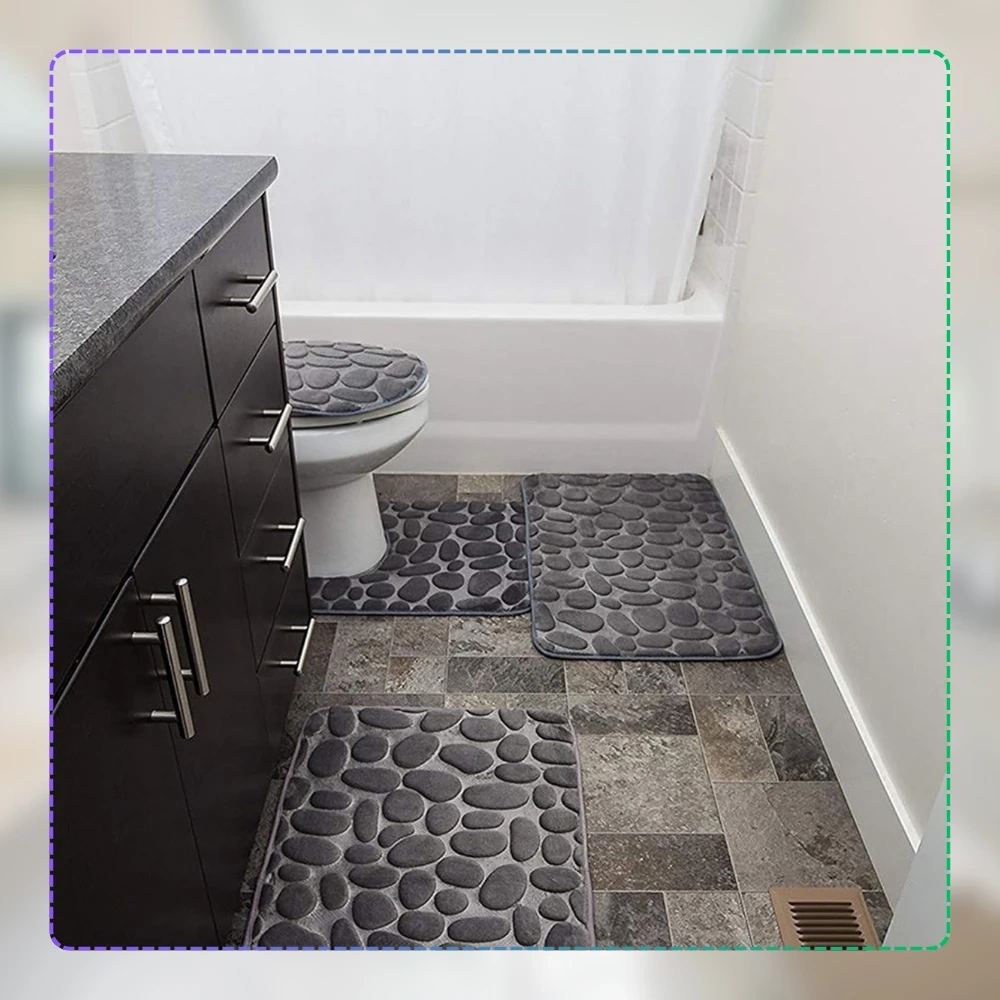 - Set de covorașe pentru baie 3pcs Covoraș anti-alunecare Covoraș pentru scaunul de toaletă