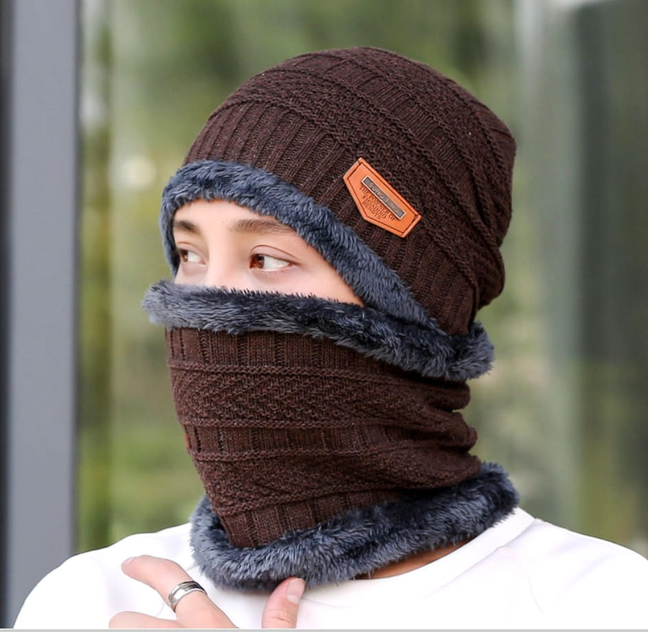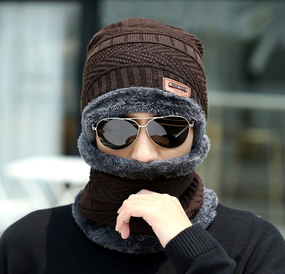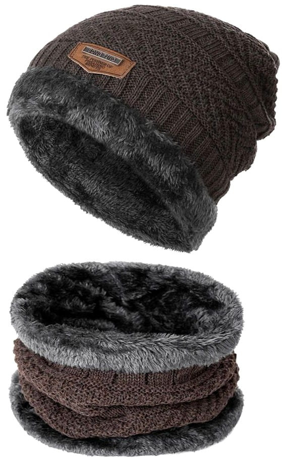 Setul de căciulă cu tunel izolat și coș de fum maro pentru bărbați - un set universal care va fi întotdeauna la modă.