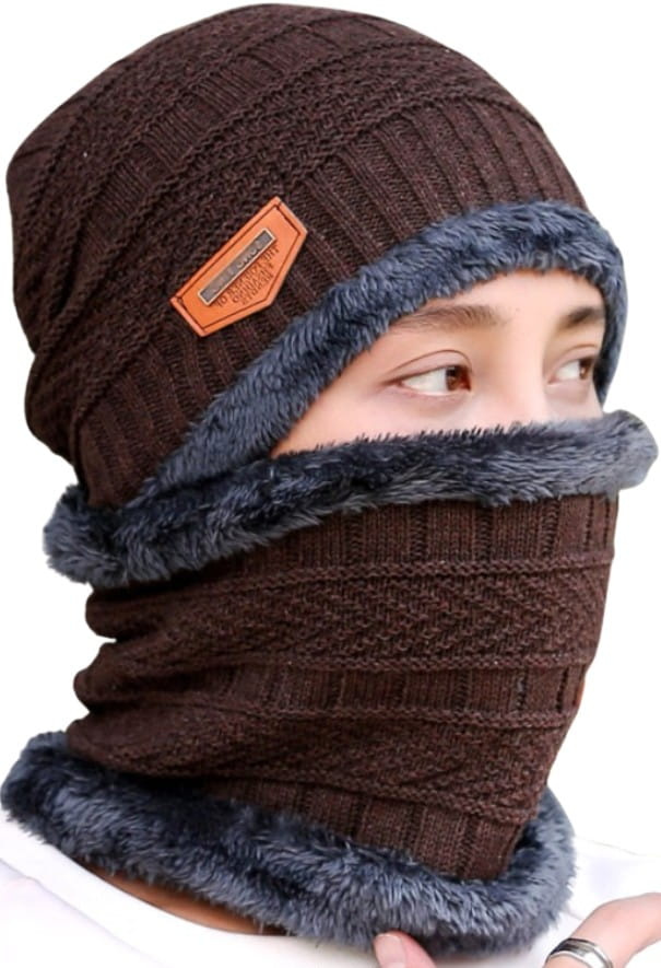 Set barbati: palarie + esarfa, tunel izolat, maro