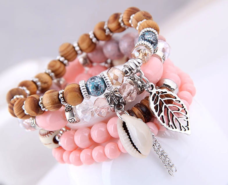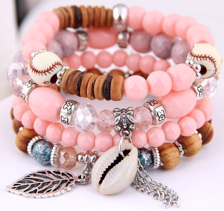 Un set de 4 brățări din mărgele pe o bandă elastică