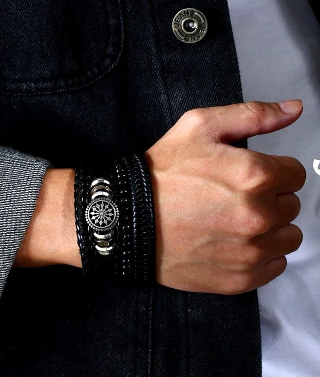 8,5 cm Cea mai îngustă brățară: 1,4 cm, Cea mai lată brățară: 2 cm Culoarea articolului: Negru
