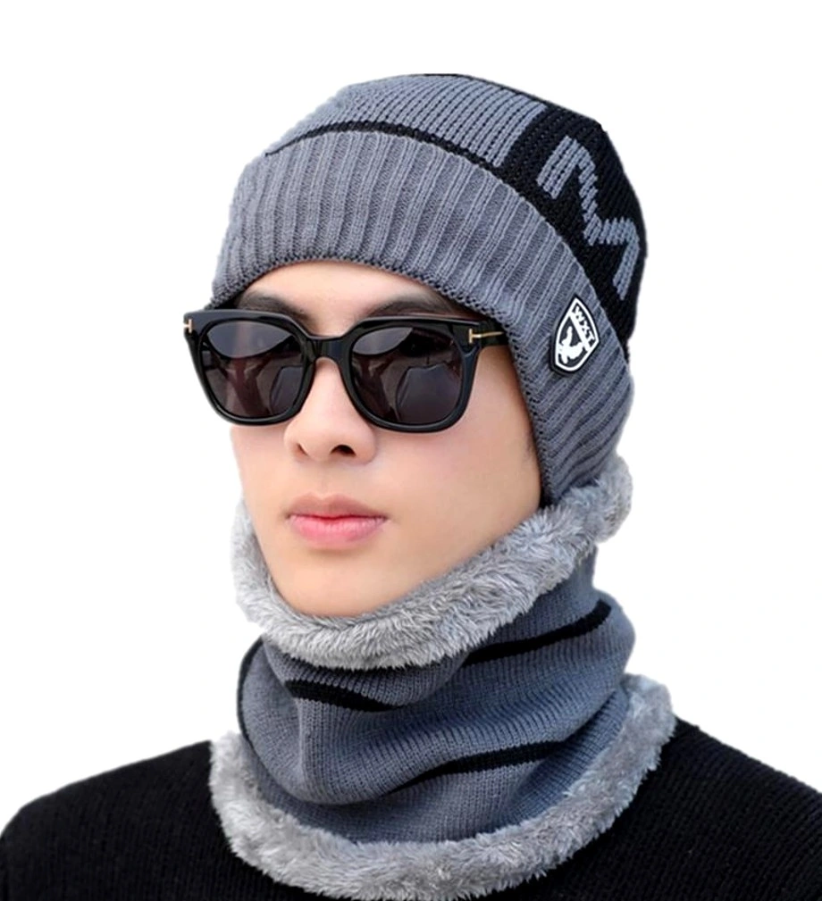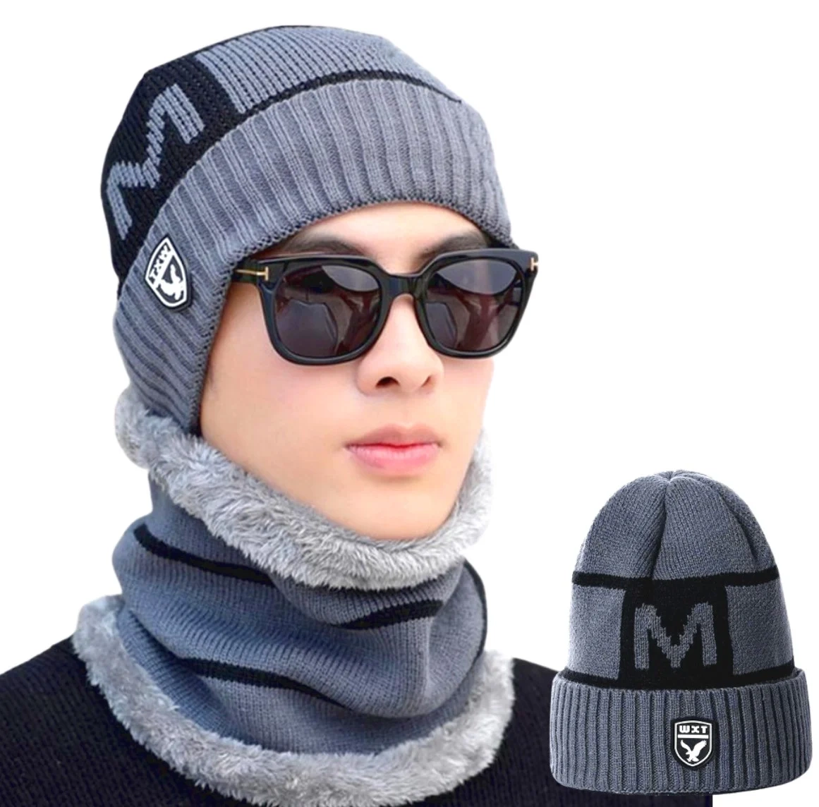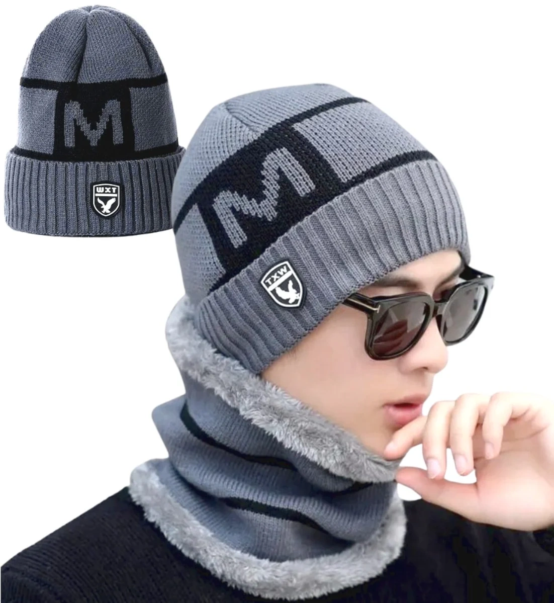 Set căciulă izolată de iarnă pentru bărbați + set eșarfe de exterior tunel