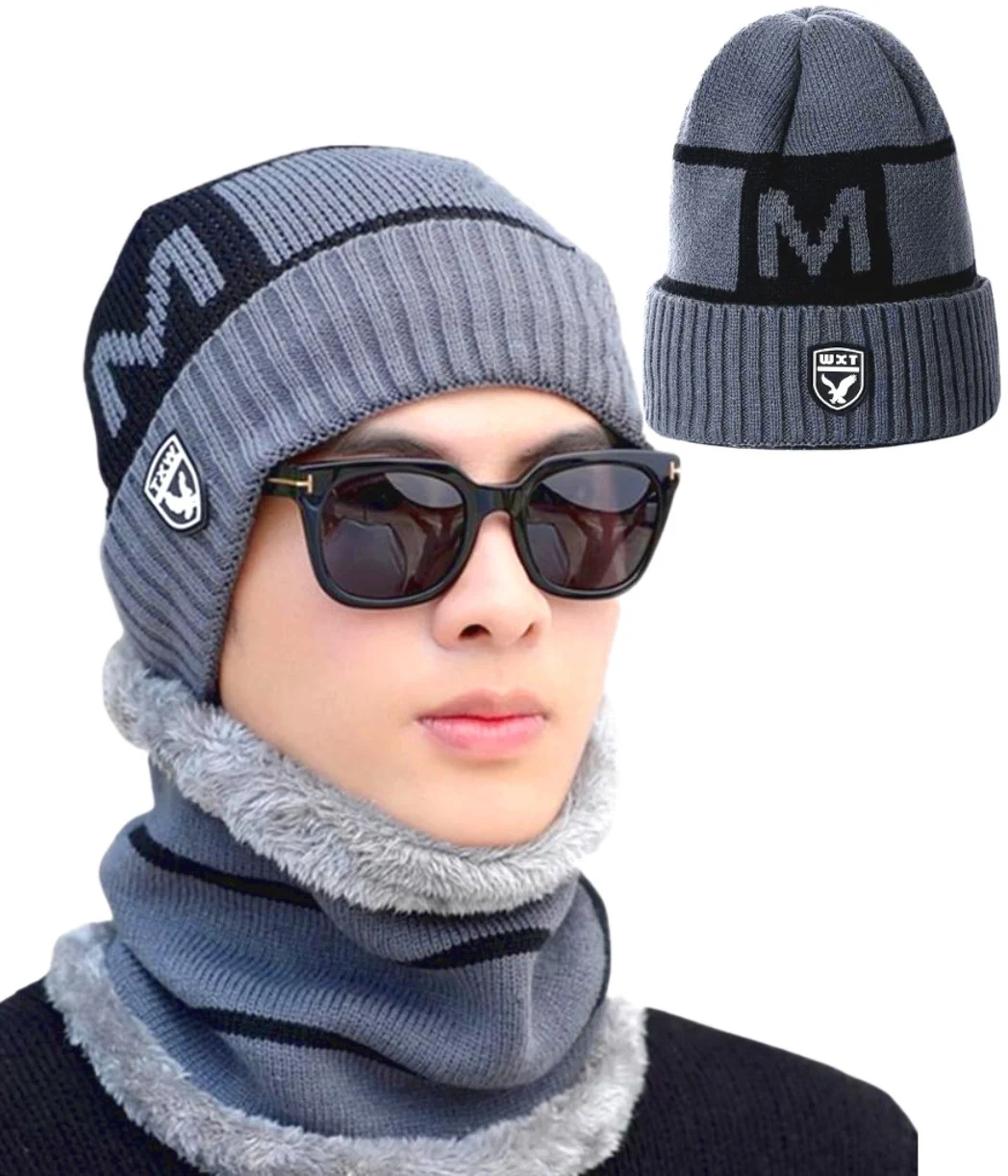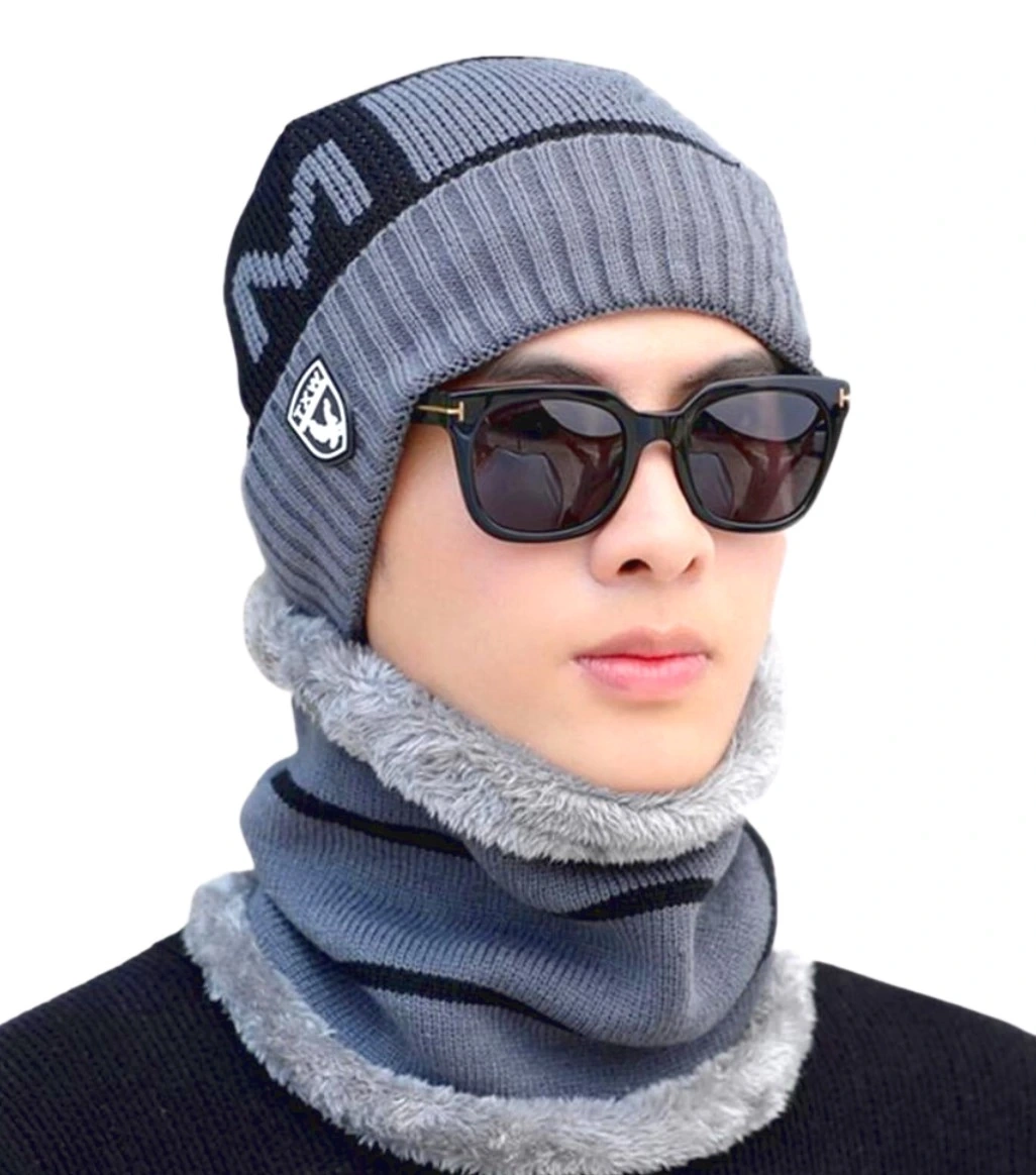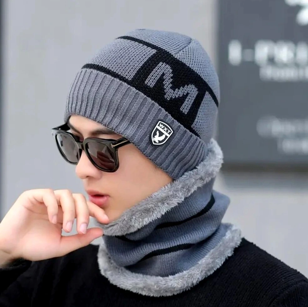 Set căciulă izolată de iarnă pentru bărbați + set eșarfe de exterior tunel