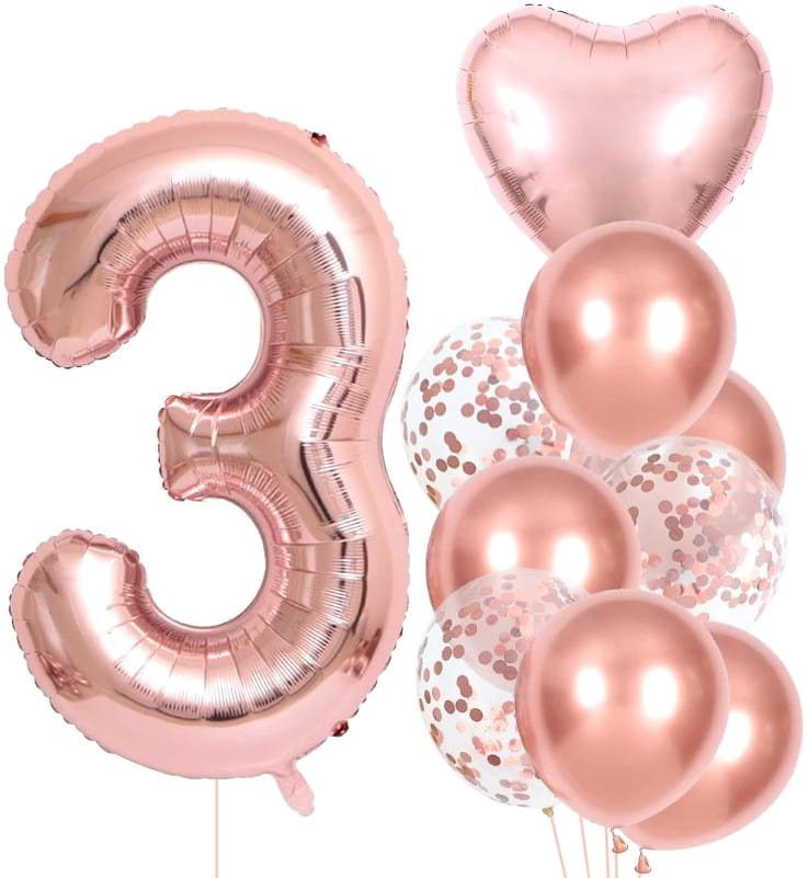 Set de 10 baloane roz pentru a treia aniversare - decorațiuni perfecte pentru petrecerea de ziua unui copil