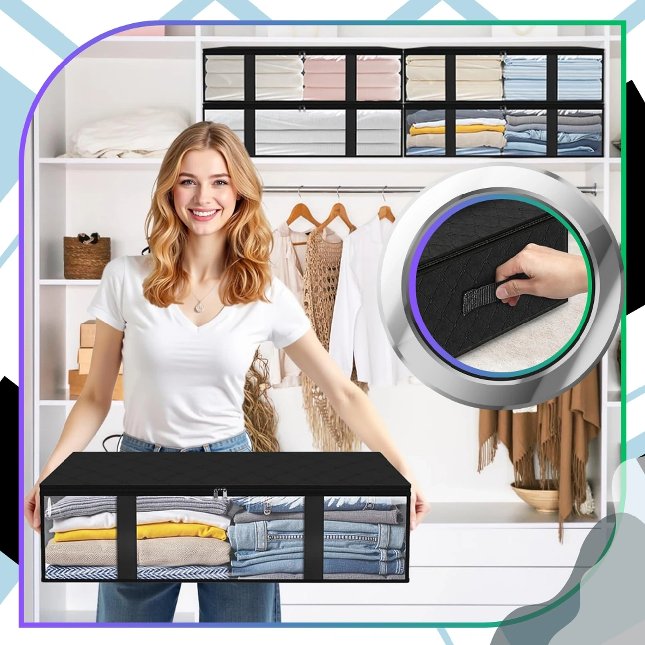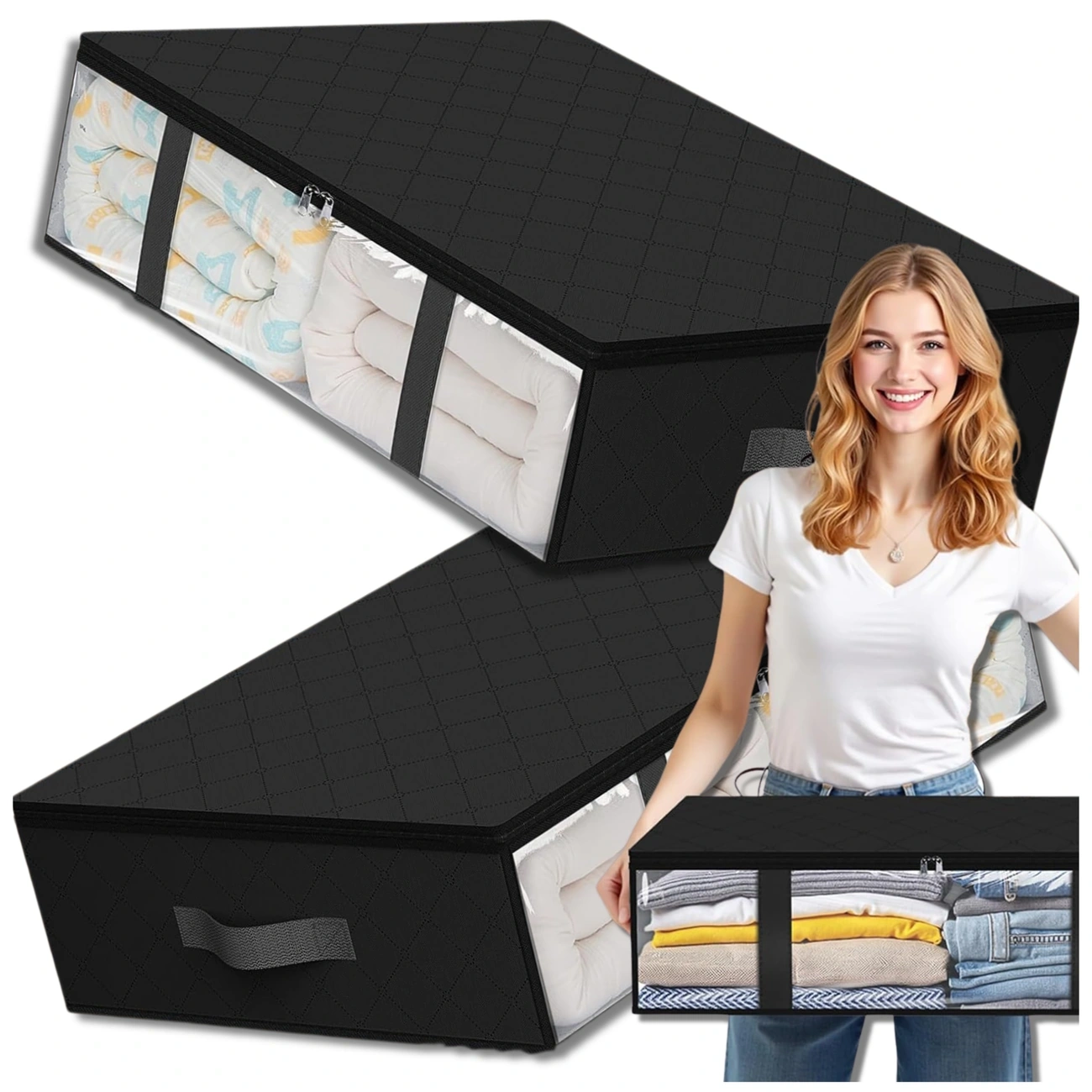 Acest set este neprețuit dacă prețuiți funcționalitatea și protecția durabilă a textilelor depozitate. Aceste organizatoare vă ajută să vă mențineți garderoba ordonată și să preveniți cutele nedorite. Perfecte pentru depozitarea lenjeriei de pat, a textilelor mari, a hainelor de sezon sau a accesoriilor pentru copii. Indiferent dacă le depozitați sub pat, pe rafturi sau în dulap, acestea își mențin întotdeauna un aspect curat și plăcut din punct de vedere estetic.