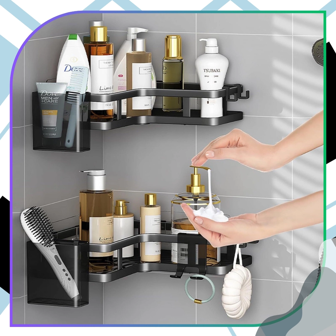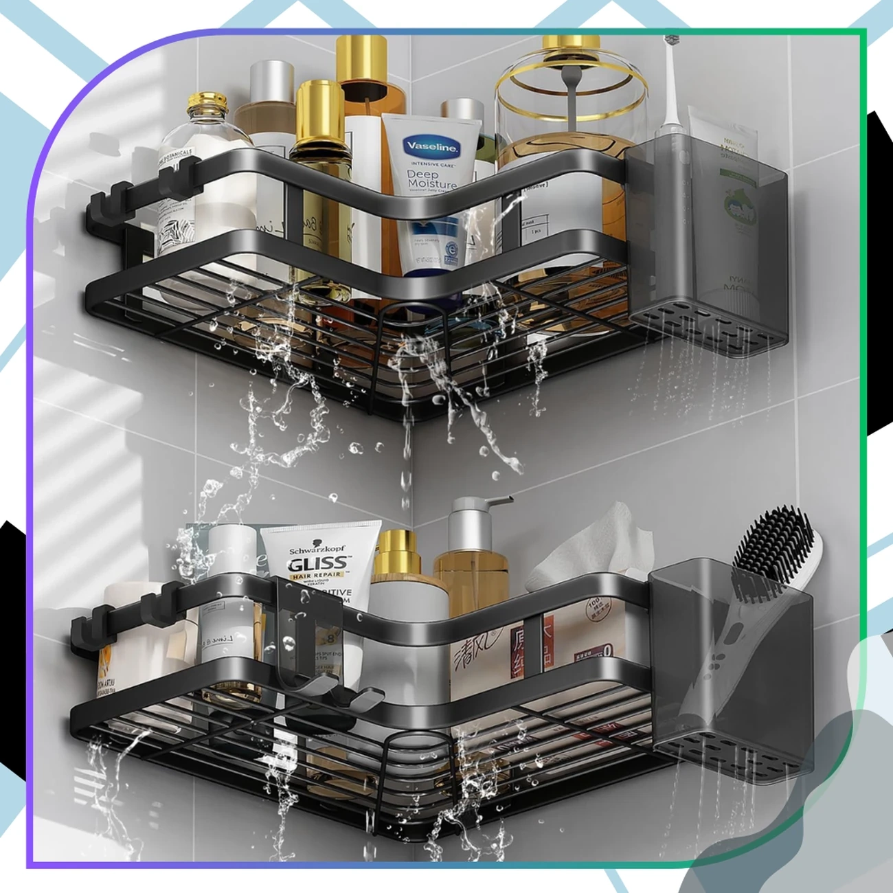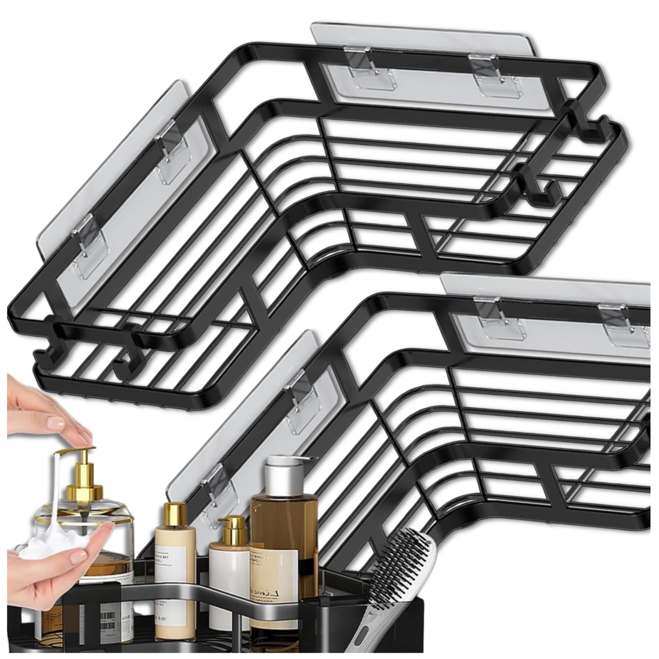 Descoperiți un set excepțional de robust și practic de rafturi de colț **noi**, perfecte pentru organizarea băii, bucătăriei sau dușului. Aceste rafturi funcționale **pentru baie** sunt fabricate din oțel inoxidabil durabil, acoperite cu pulbere neagră, ceea ce le face rezistente la umiditate, apă și coroziune. Aspectul lor modern le face o completare perfectă pentru orice decor și, datorită designului lor inteligent, oferă o organizare perfectă pentru cosmetice și accesorii.