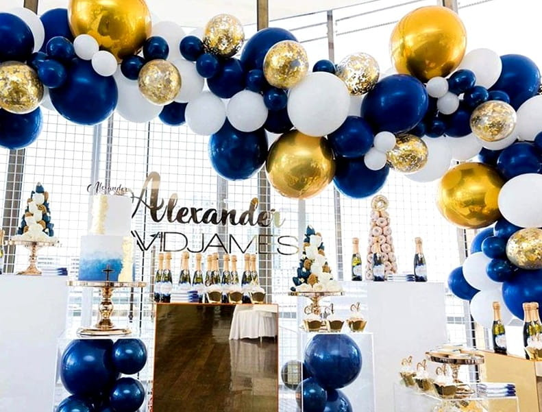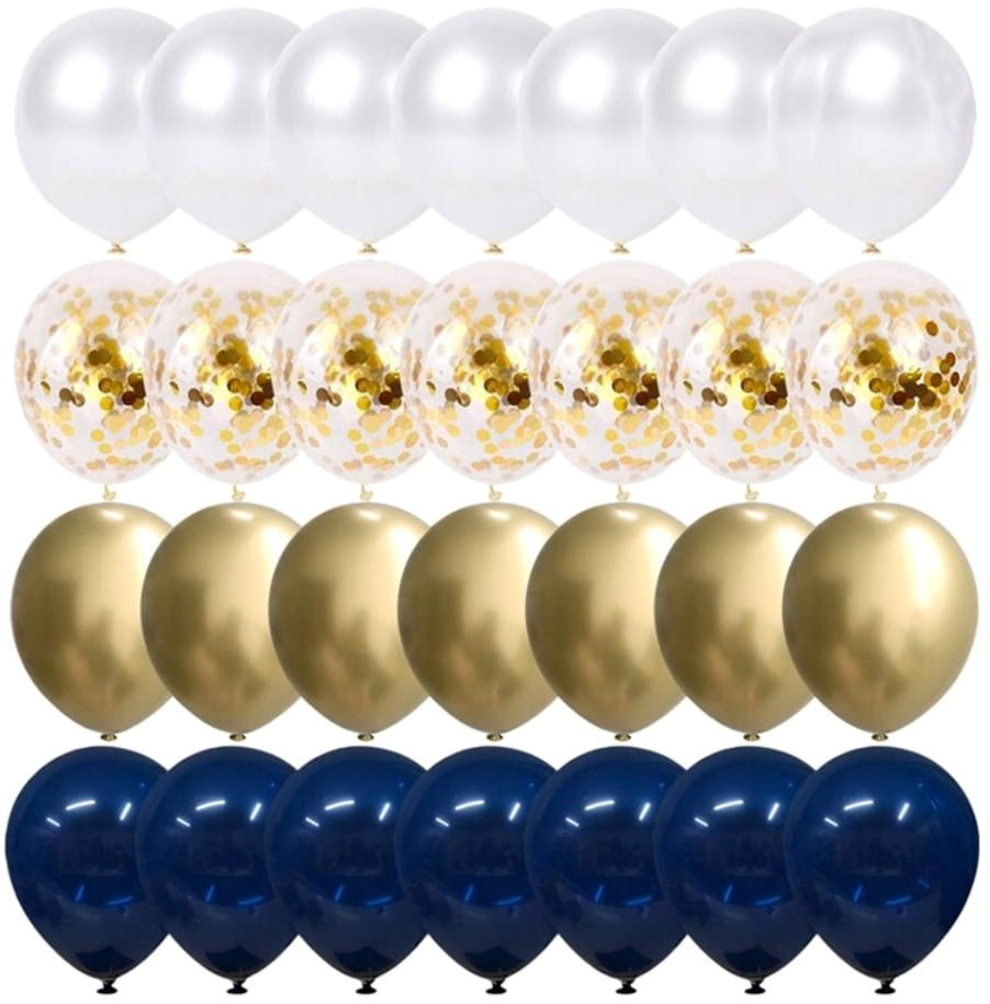 Set de 28 de piese baloane bleumarin si auriu amestecate cu confetti, ziua de nastere, nunta