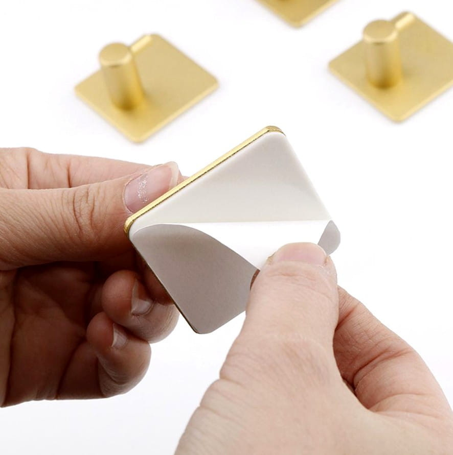 Frumosul set de cârlige de perete autoadezive aurii Loft nu necesită asamblare cu un burghiu și o șurubelniță. Fiecare piesă din set are aceeași lățime și înălțime de 4,5 cm.
