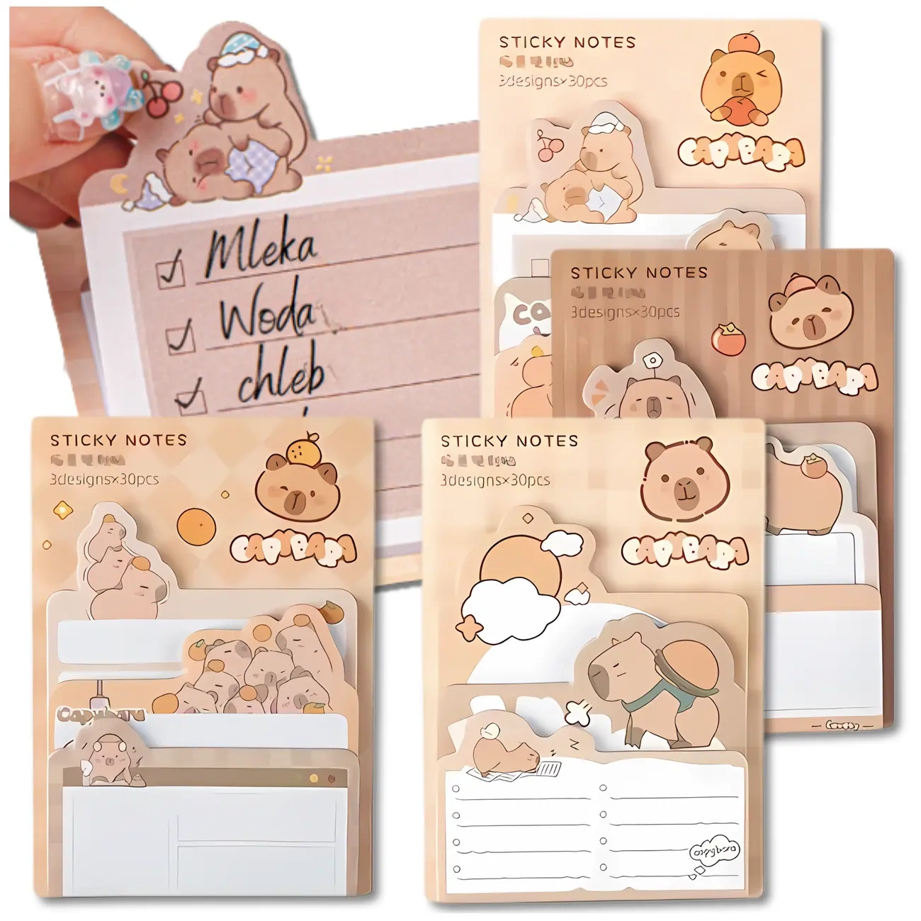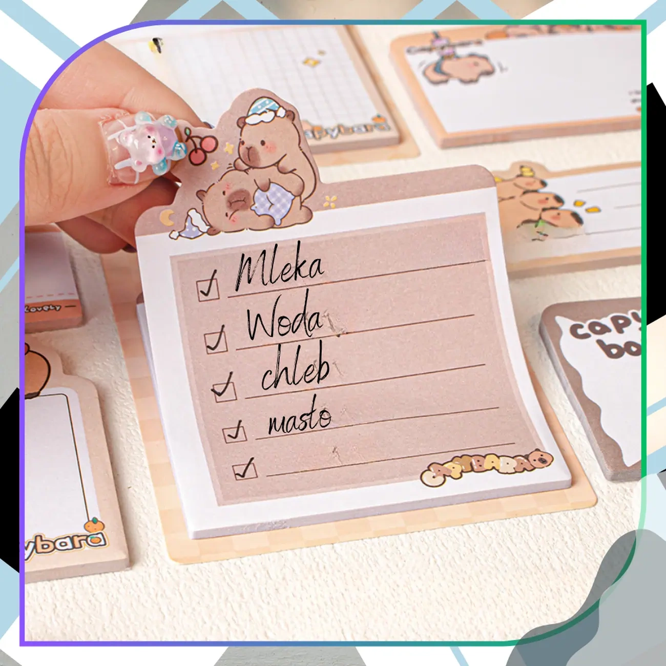 Setul nostru de note autoadezive cu capibara a fost creat cu gândul la elevi, studenți, angajați de birou și antreprenori. Este un instrument ideal pentru note rapide în timpul întâlnirilor, mementouri ale unor date importante sau crearea de planuri creative. Datorită diferitelor modele și culori, sarcinile de zi cu zi devin mai plăcute, iar notele dvs. - mai clare și organizate.