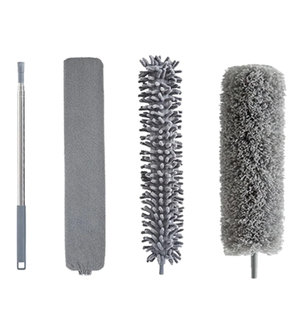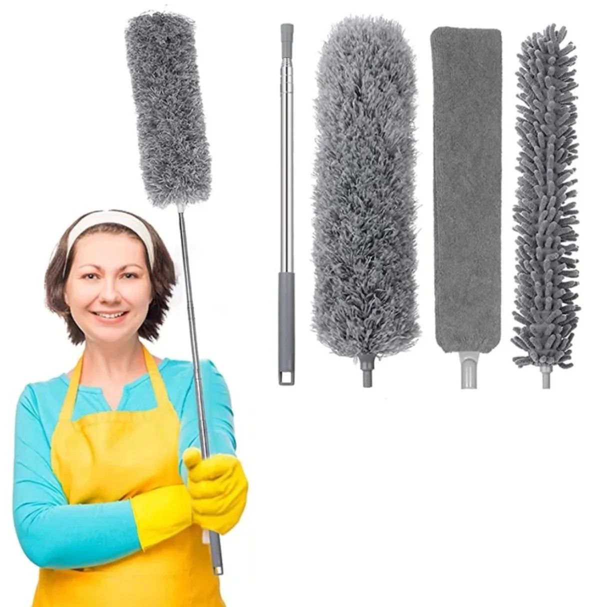 Kit complet de curățare puternic> : Setul include o tijă telescopică din oțel inoxidabil de 2,5 m lungime, un praf din microfibră, o perie îngustă pentru praf și o perie pentru crăpături. Perfect pentru curățarea golurilor, ventilatoarelor, tavanelor înalte, jaluzelelor, canapelelor sau mașinilor.