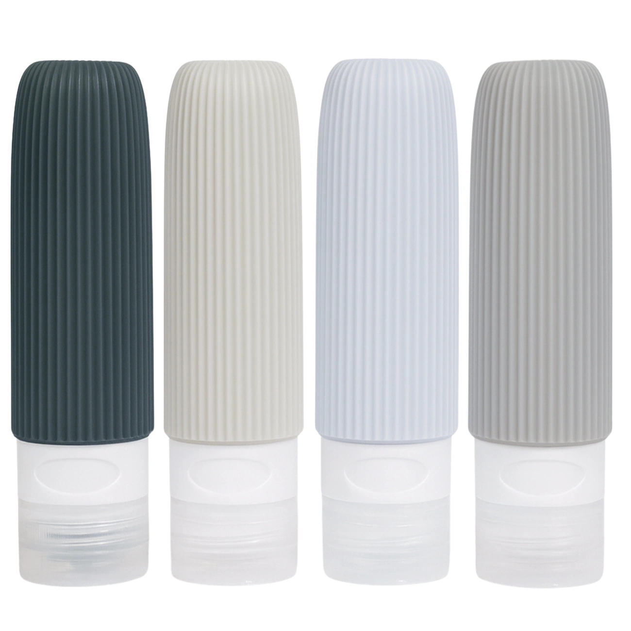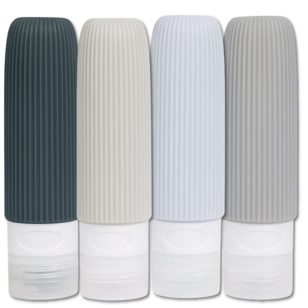 Noul set de sticle de voiaj din silicon (4 bucăți) este o soluție practică pentru transportul cosmetic și în condiții de siguranță pentru cei care își doresc transportul în condiții de siguranță. Fiecare sticlă are o capacitate de 90 ml (3 fl oz), făcându-le ideale pentru transportul în bagajele de mână – în conformitate cu cerințele companiei aeriene.