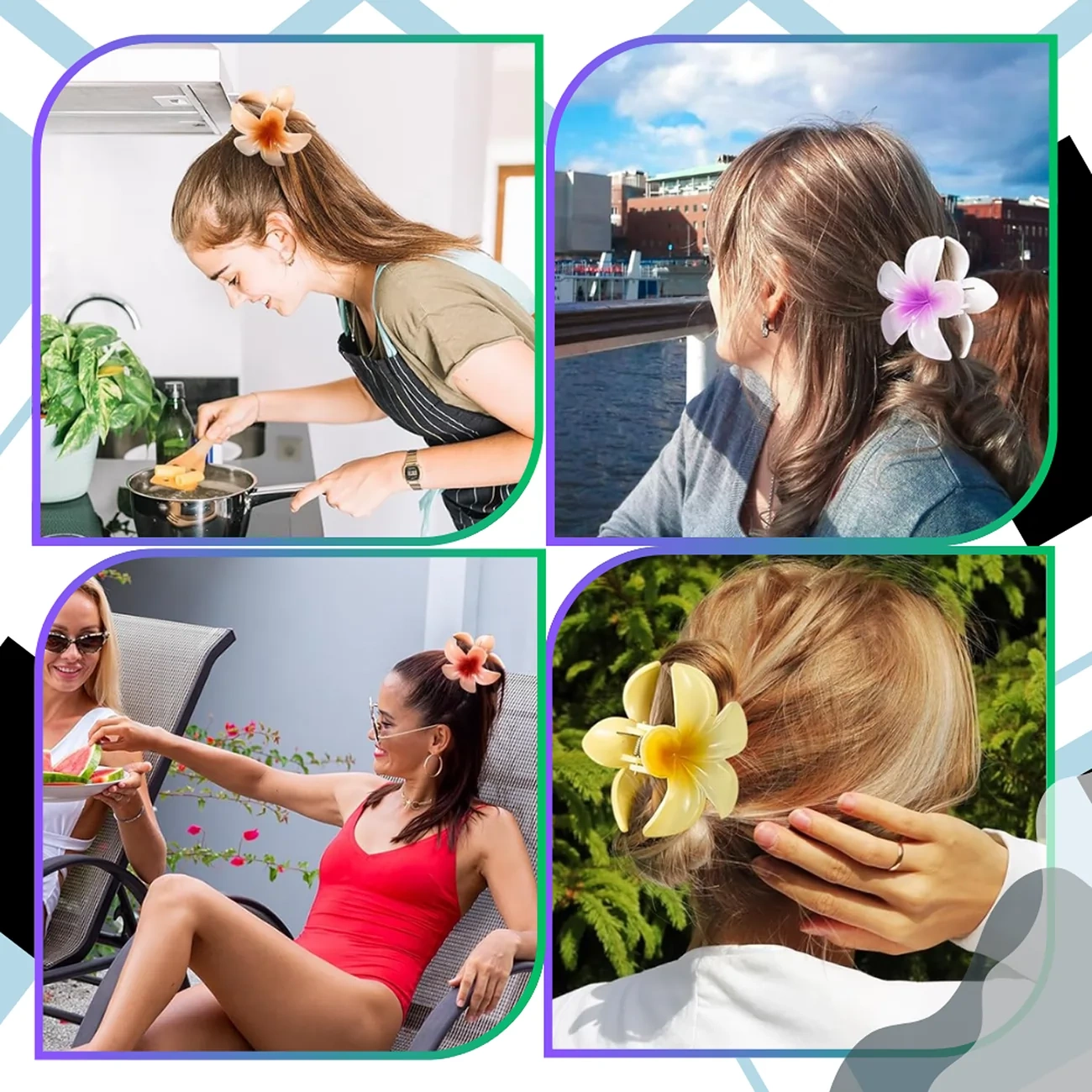 Aliniați-vă coafurile cu un nou set de agrafe de păr inspirate dintr-un stil tropical! Agrafele de păr cu flori de Plumeria sunt accesoriul perfect pentru fiecare femeie care dorește să adauge un pic de farmec de vară stilului său. Designul lor unic și nuanțele multicolore fac părul să arate proaspăt, elegant și feminin - ca în timpul unei vacanțe la plajă.