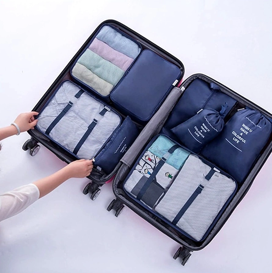 Setul de călătorie recomandat pentru valiza impermeabilă cu 7 organizatoare este soluția ideală pentru persoanele cărora le plac lucrurile în ordine.