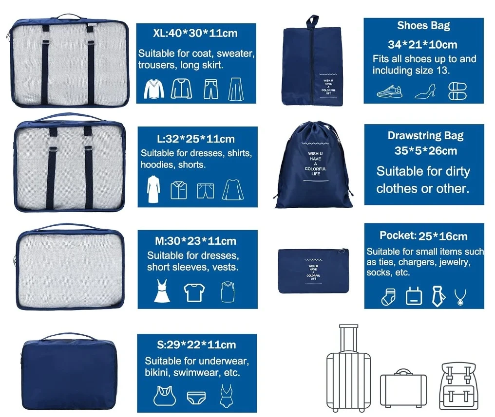 Set de călătorie pentru valiză 7 organizatoare impermeabile - practice și încăpătoare