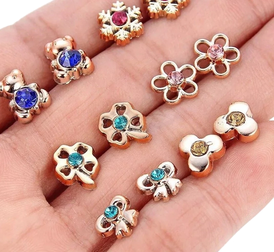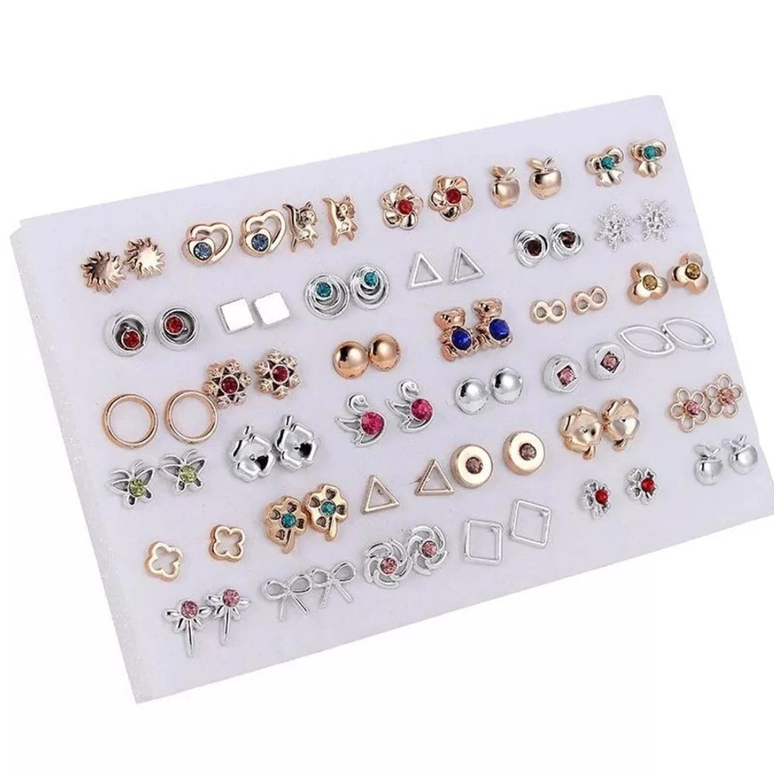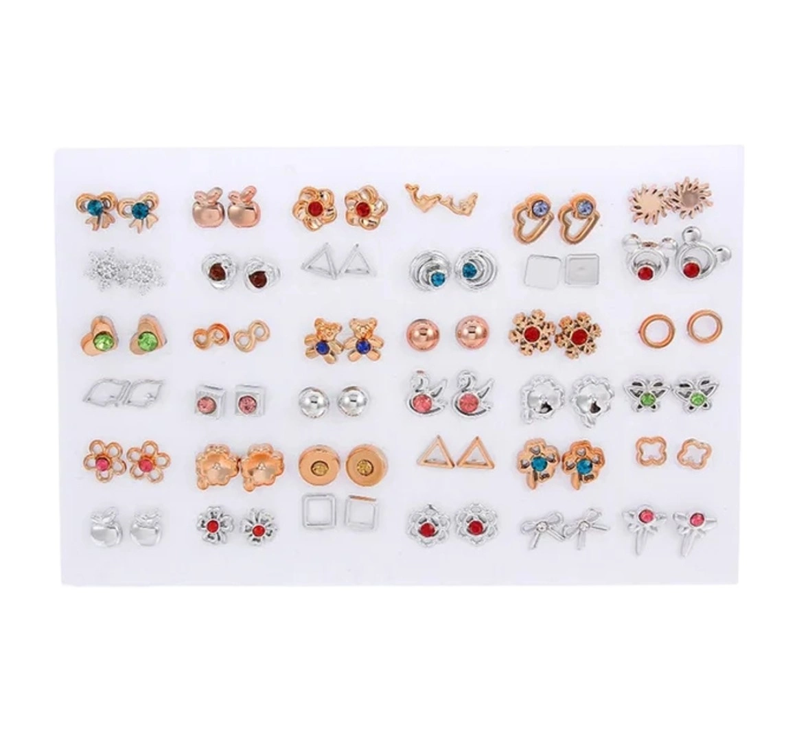 Set de cercei mici de aur 36 perechi zirconiu fluture inima arc