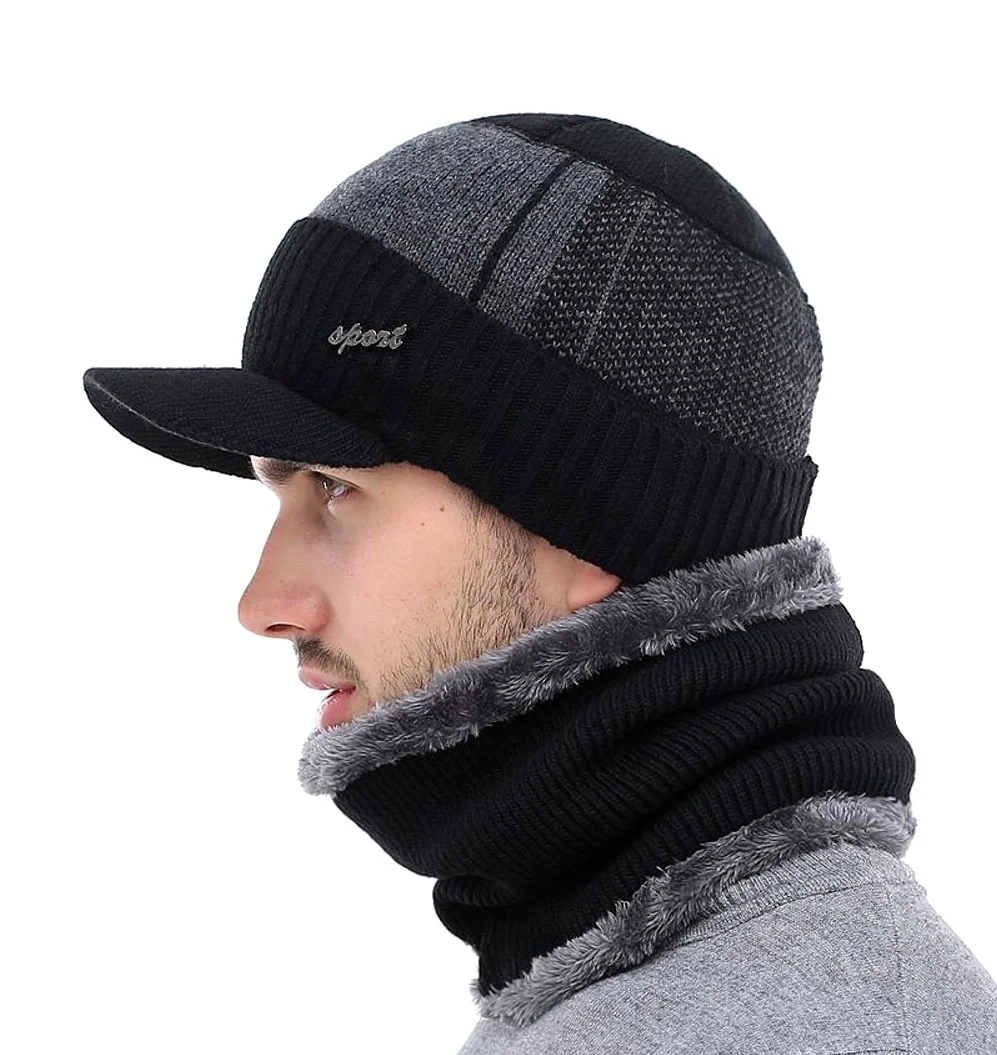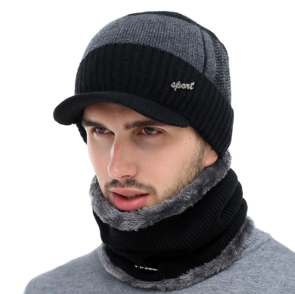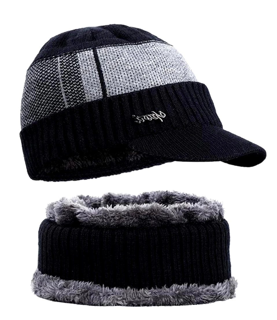 Set de iarna: sapca baseball + cos de fum, tunel izolat barbatesc