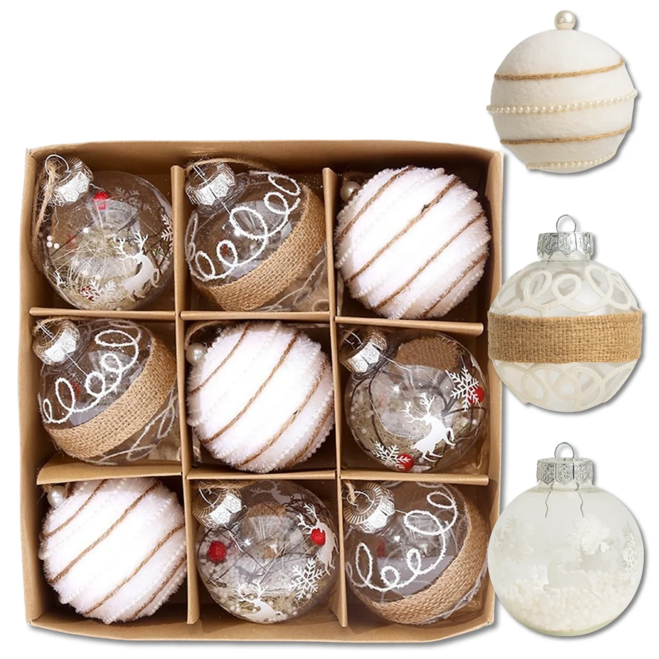 Set de 9 globuri de Crăciun acrilice de 8 cm în stil rustic