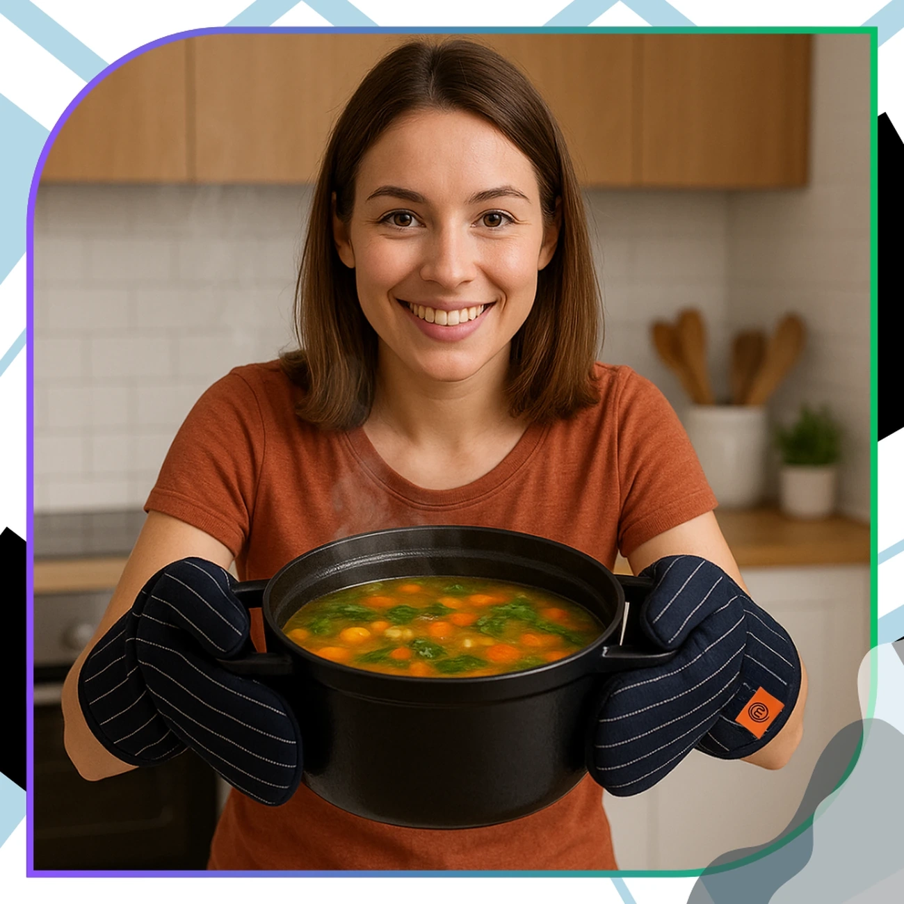 Cu acest set dublu, aveți întotdeauna la îndemână protecție suplimentară – perfect pentru sesiuni mai mari de gătit sau pentru pregătirea meselor împreună în familie. Setul de mănuși și tampoane pentru cuptor MasterChef nu este doar sigur și convenabil, ci și o piesă elegantă de echipament de bucătărie.