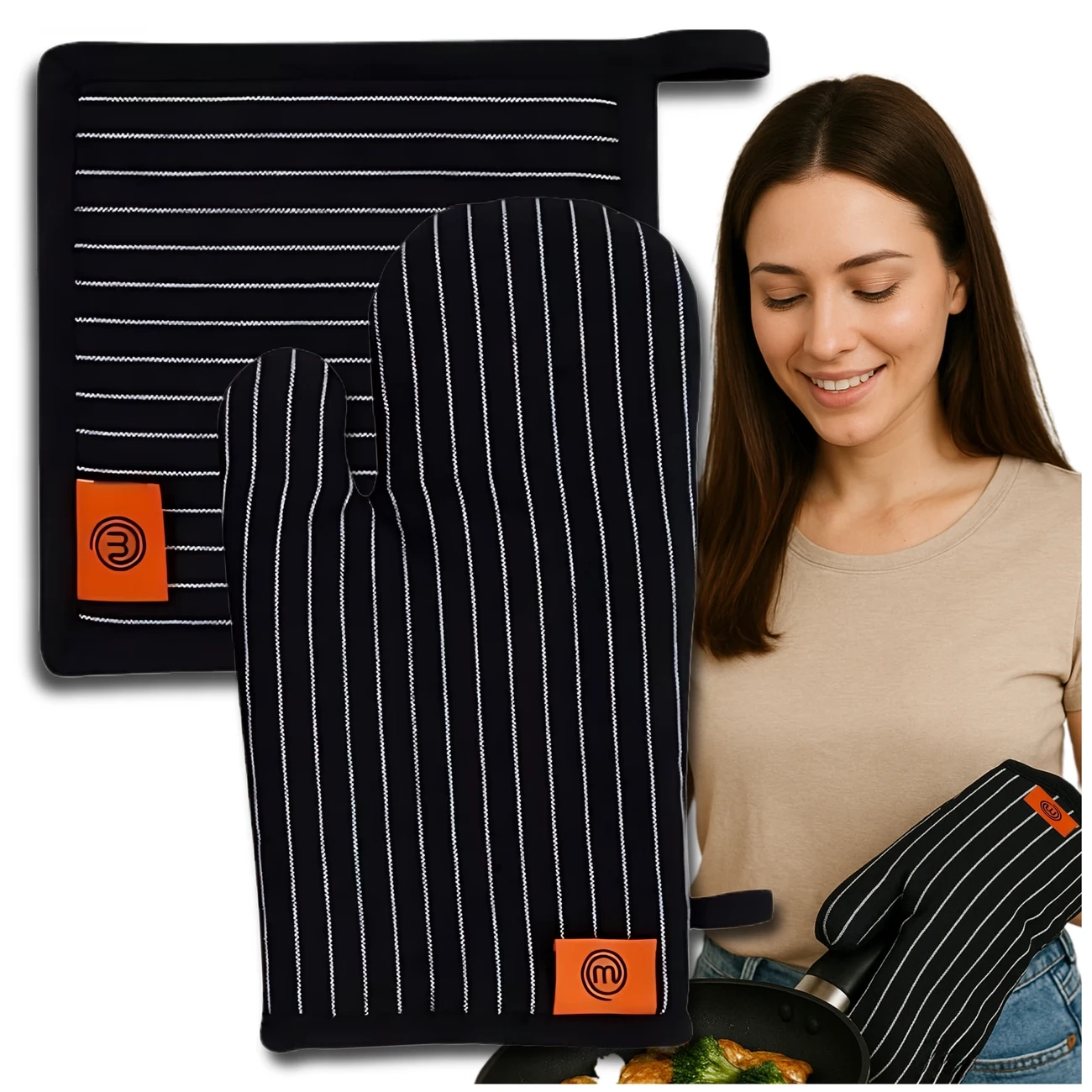 Setul de mănuși și mănuși de bucătărie MasterChef este, de asemenea, o idee grozavă de cadou. Datorită aspectului său elegant și manoperei de înaltă calitate, este un cadou practic perfect pentru familia, prietenii sau cunoștințele cărora le place să gătească.