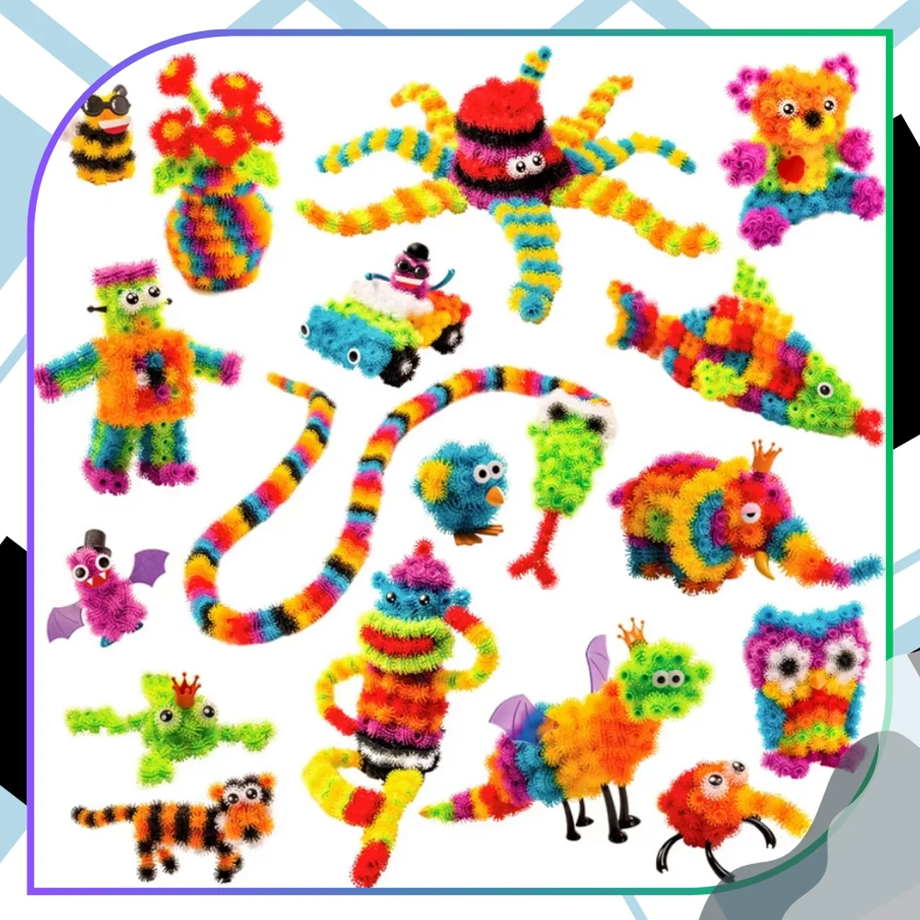 Setul conține 400 de blocuri colorate cu proeminențe flexibile și 36 de accesorii fermecătoare, cum ar fi ochi, nasuri, mâini și pălării. Acestea conferă personajelor construite o personalitate unică, ceea ce sporește distracția jocului. Blocurile cu velcro se conectează și se demontează ușor, astfel încât copiii pot crea eficient personaje, animale, vehicule și modele fantastice, transformând orice idee în realitate.