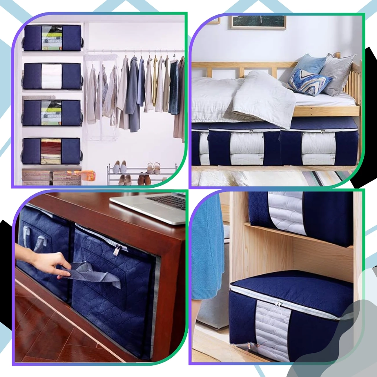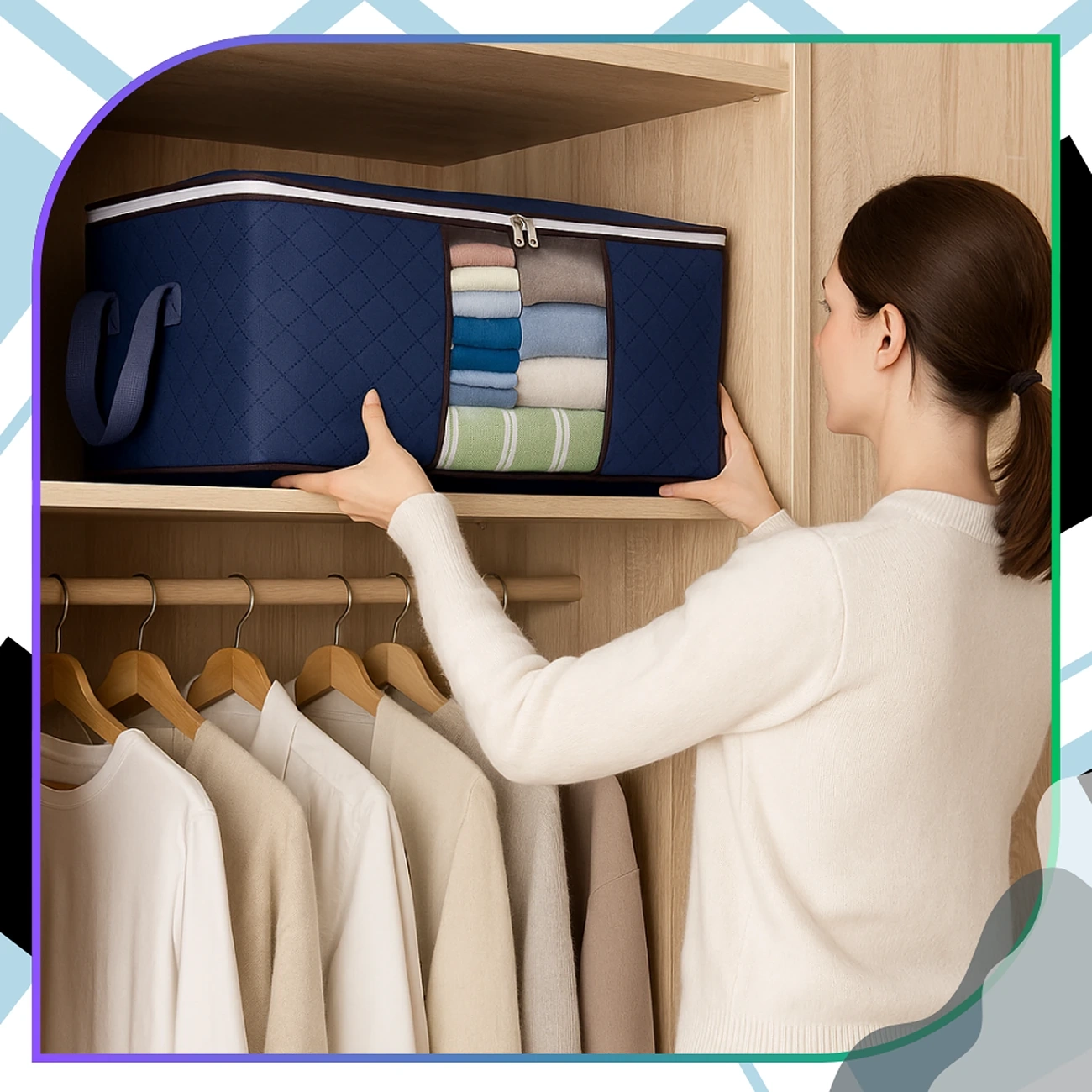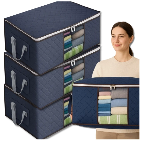 Un set de 3 huse spațioase – fiecare cu o capacitate de până la 90 de litri – este modalitatea perfectă de a depozita inteligent și estetic lucrurile într-un dulap, debara, sub pat sau pe rafturi. Acest organizator de dulap a fost conceput pentru a rezolva definitiv problema lipsei de spațiu și a haosului din casa ta. Interiorul mare îți permite să încapi lenjerie de pat, pilote, prosoape și chiar jachete de iarnă și pulovere groase. Este, de asemenea, perfect ca husă de haine pentru depozitare în extrasezon – hainele tale vor rămâne în siguranță până în sezonul următor.