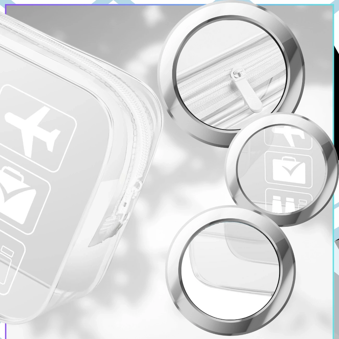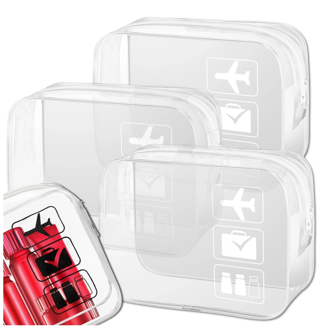 Set de 3 pungi transparente pentru cosmetice de călătorie - Alb | 20 × 15 × 6 cm