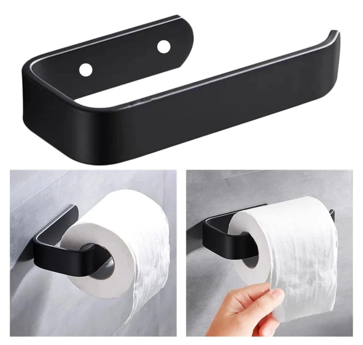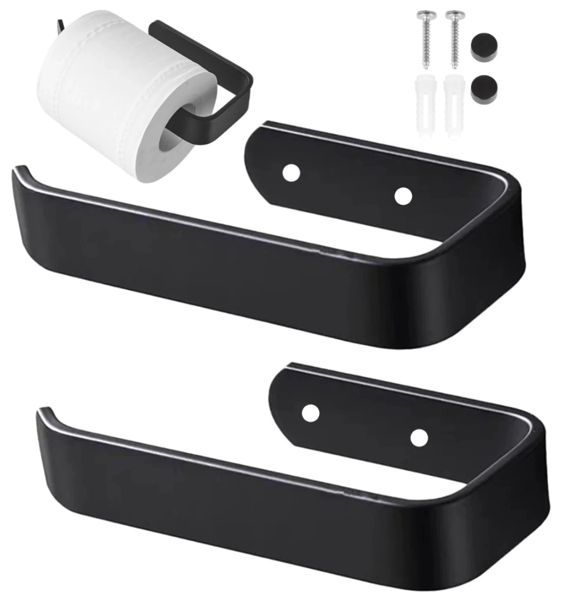 Suport de perete negru set de 2 pentru șuruburi pentru hârtie igienică