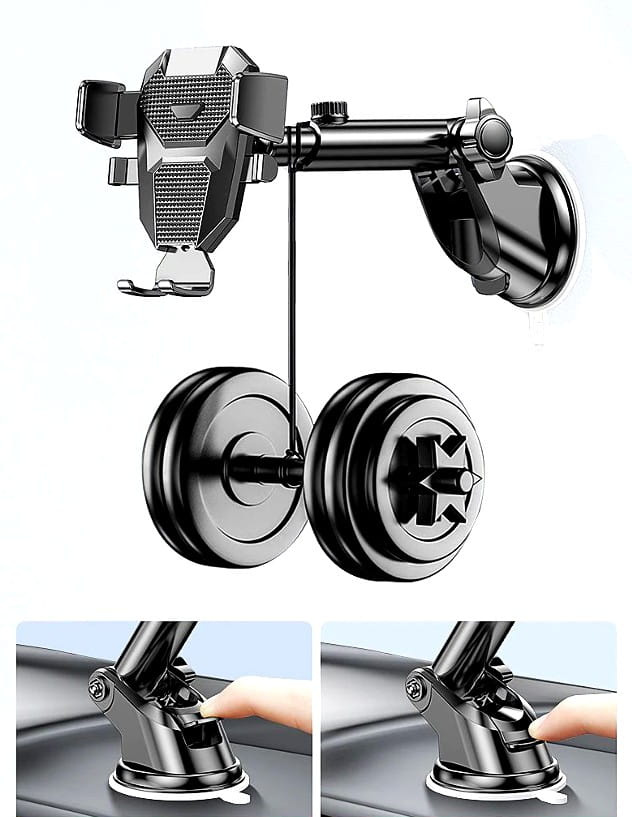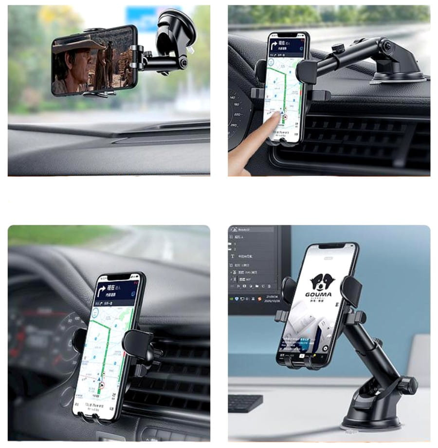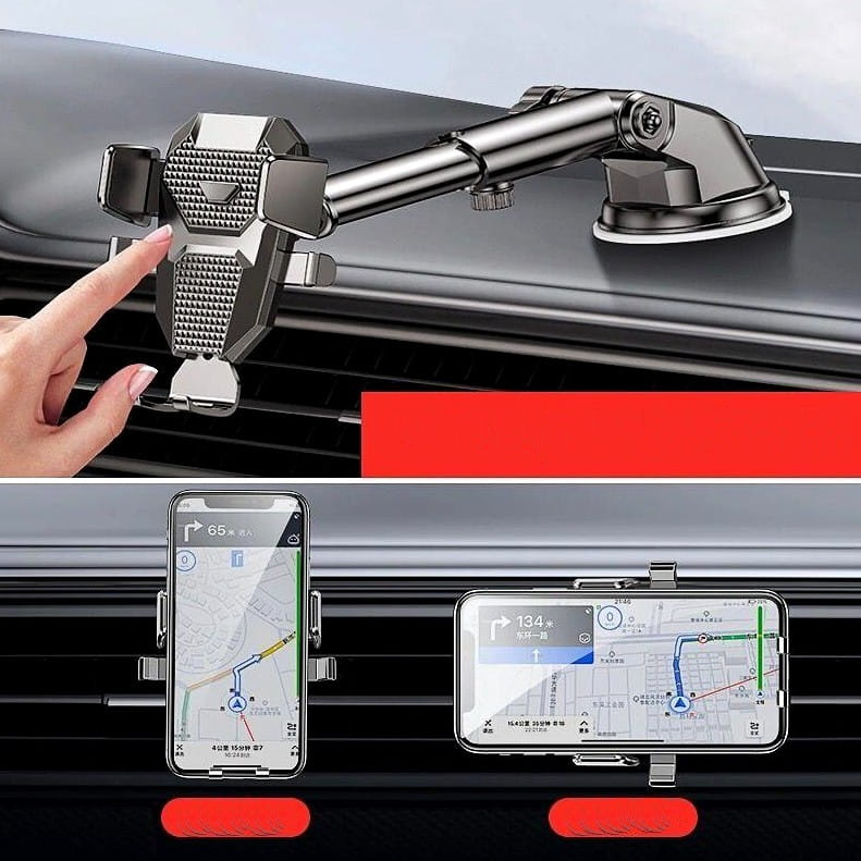 Suportul auto telescopic negru este echipat cu o funcție de rotație la 360 de grade. Aceasta este o ajustare multipunct care permite plasarea telefonului în orice poziție.