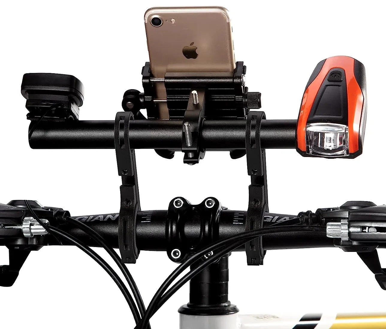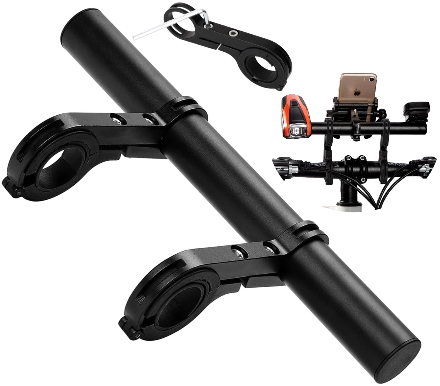 Suportul extrem de practic pentru ghidon de bicicletă Extensorul puternic pentru ghidon de bicicletă va funcționa bine ca o piesă suplimentară de montat pe ghidonul dvs. Puteți atașa telefonul, navigația, GPS-ul sau lumina la acesta. Extensia oferită are forma unei tije lungi cu două mânere de culoare neagră.