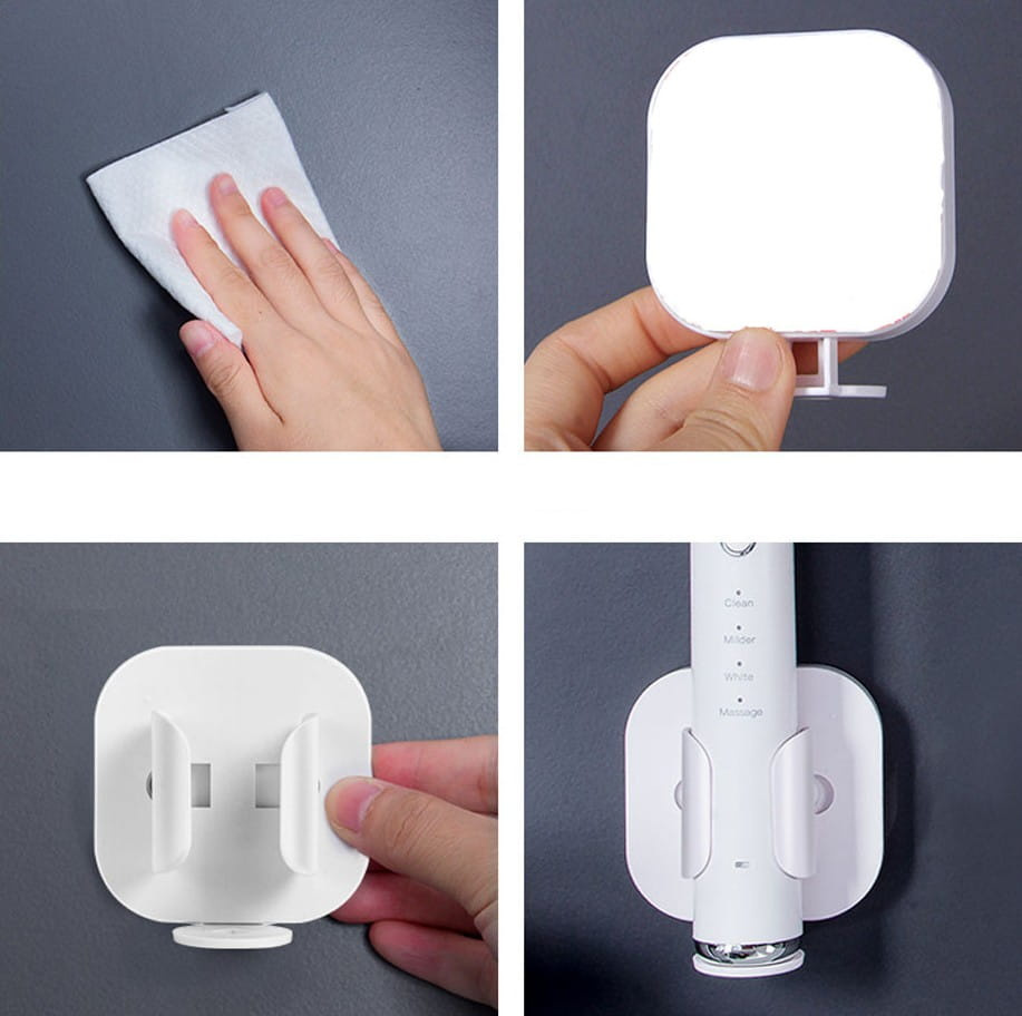 Practicul suport pentru periuță de dinți electrică montat pe perete, cu dimensiunile de 7,3 cm x 7 cm, este montat pe perete cu bandă adezivă. Acest lucru asigură aderența stabilă a produsului la suprafața acestuia.