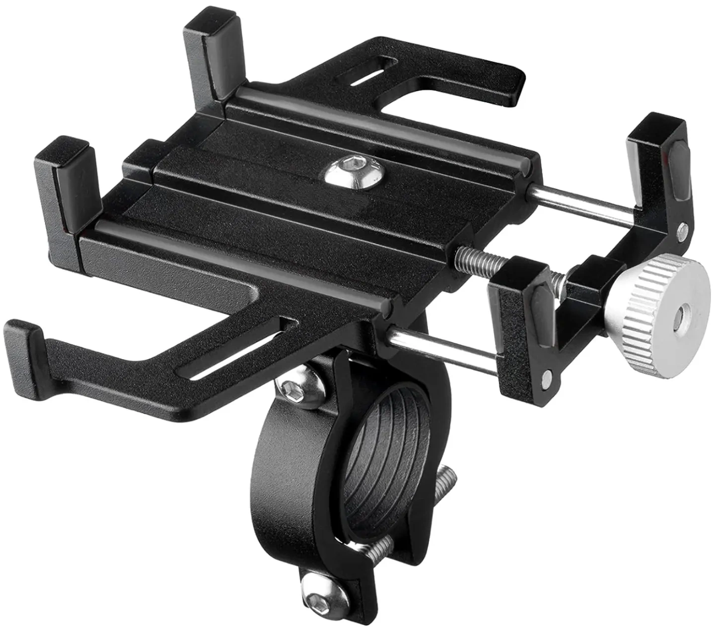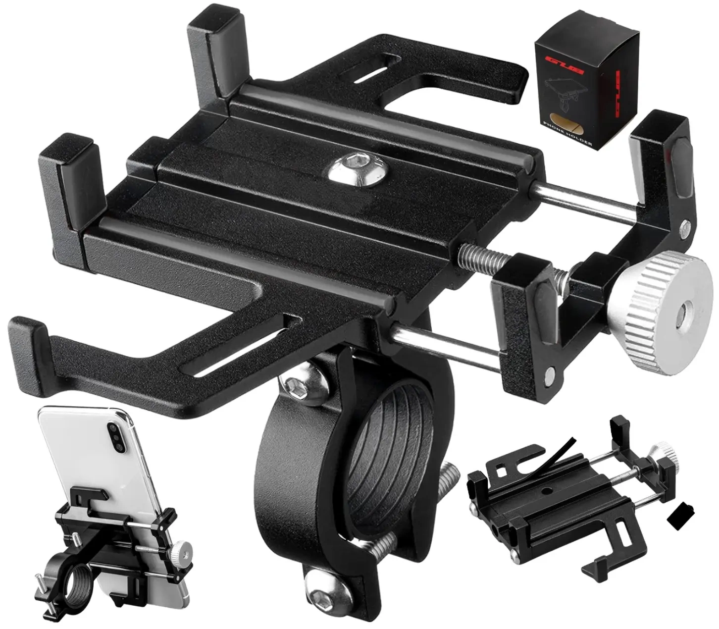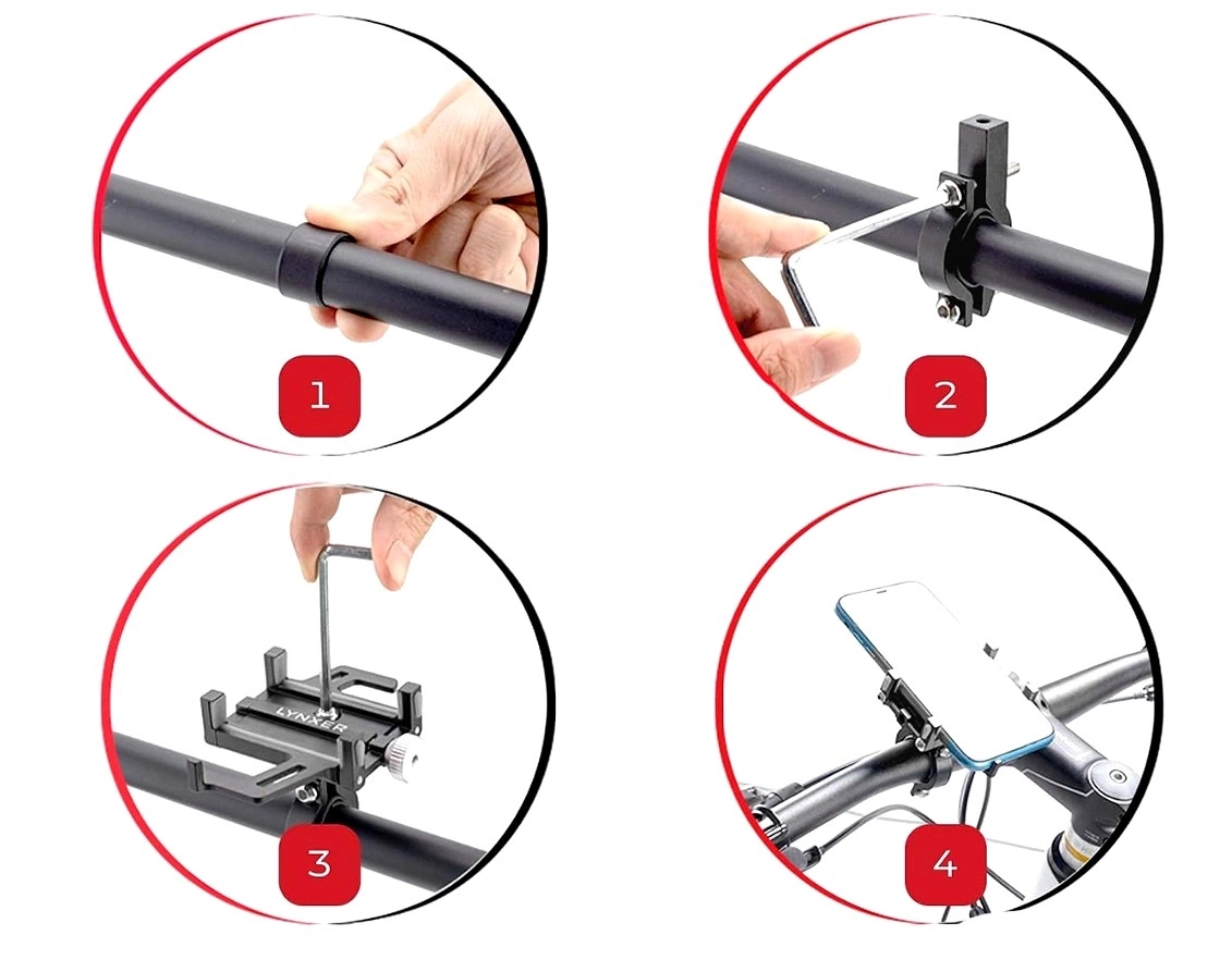 Suportul pentru telefon de pe ghidonul bicicletei , superrezistent și universal, vă va ține telefonul sau navigația în siguranță în timpul mersului. Un suport modern și elegant, este fabricat din aluminiu rezistent și bandă de silicon.