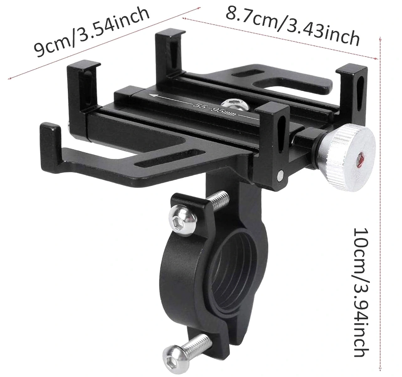 Dimensiunile sale sunt: 9 cm x 8,7 cm x 10 cm. Lățimea recomandată a telefonului este de 95 mm. Diametrul suportului este de aproximativ 31,8 mm.