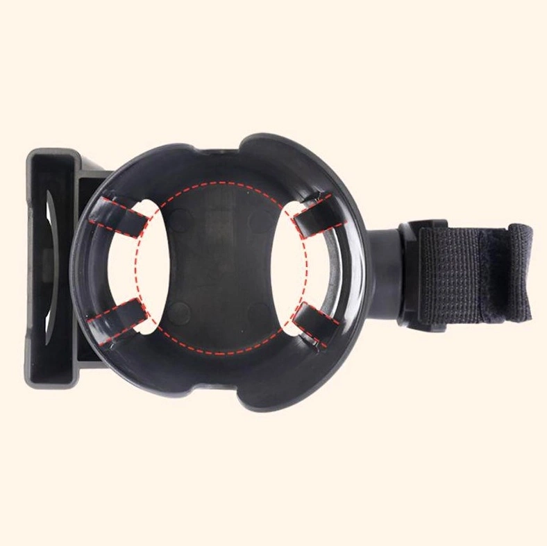 Acest produs este fabricat din plastic durabil pentru a se potrivi diferitelor dimensiuni de sticle. Acest suport este atașat cu o curea de chingă robustă și groasă, fixată cu Velcro. De asemenea, acesta poate fi instalat pe cadrul unui scaun de grădină, al unui motostivuitor, al unui scaun cu rotile sau pe mânerul unei mașini de tuns iarba.