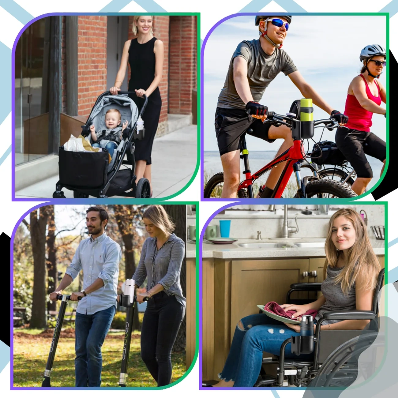 Un suport solid pentru cană, telefon, sticlă pe care îl puteți atașa la cadrul căruciorului, perfect pentru o cană sau o sticlă