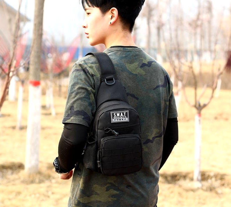 Buzunarul mai mic are bucle de chingi, astfel încât să puteți atașa accesorii suplimentare, cum ar fi o lanternă, un multitool sau un breloc rotativ.