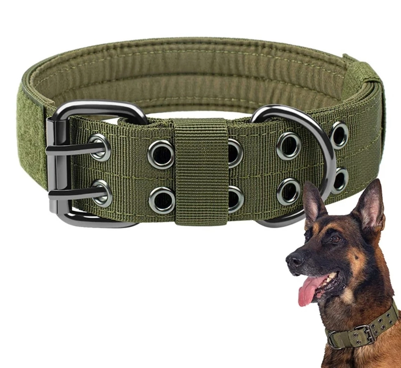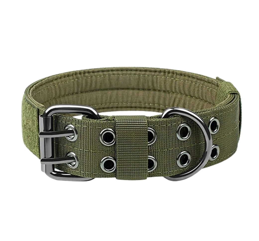 Tactic guler de câine verde reglabil dublu rând XL guler de câine